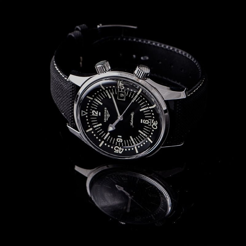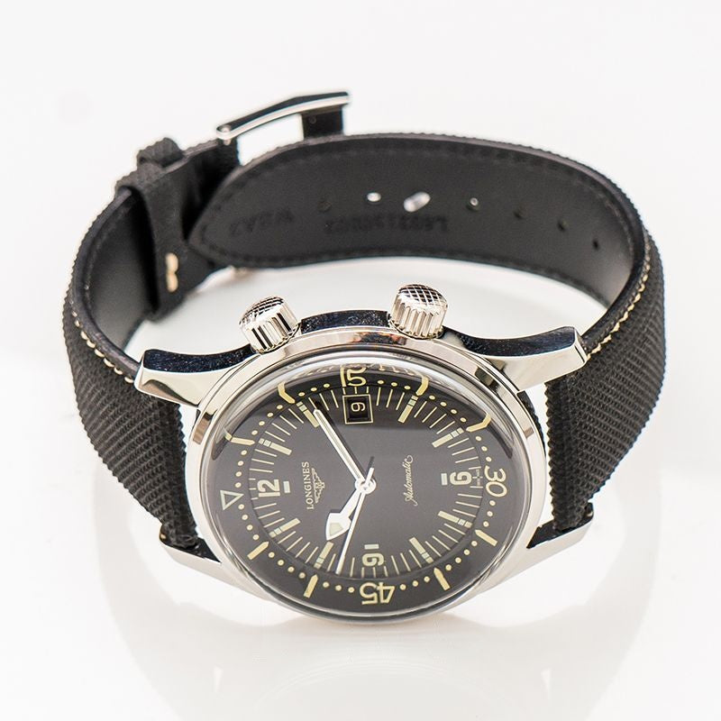 Longines Heritage 42 mm schwarzes Zifferblatt aus Edelstahl L37744500