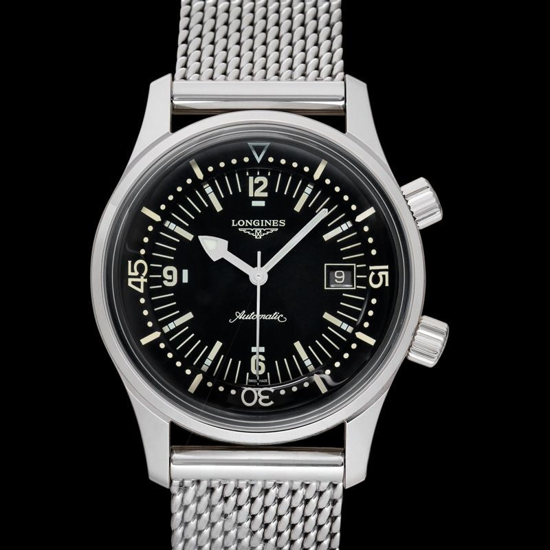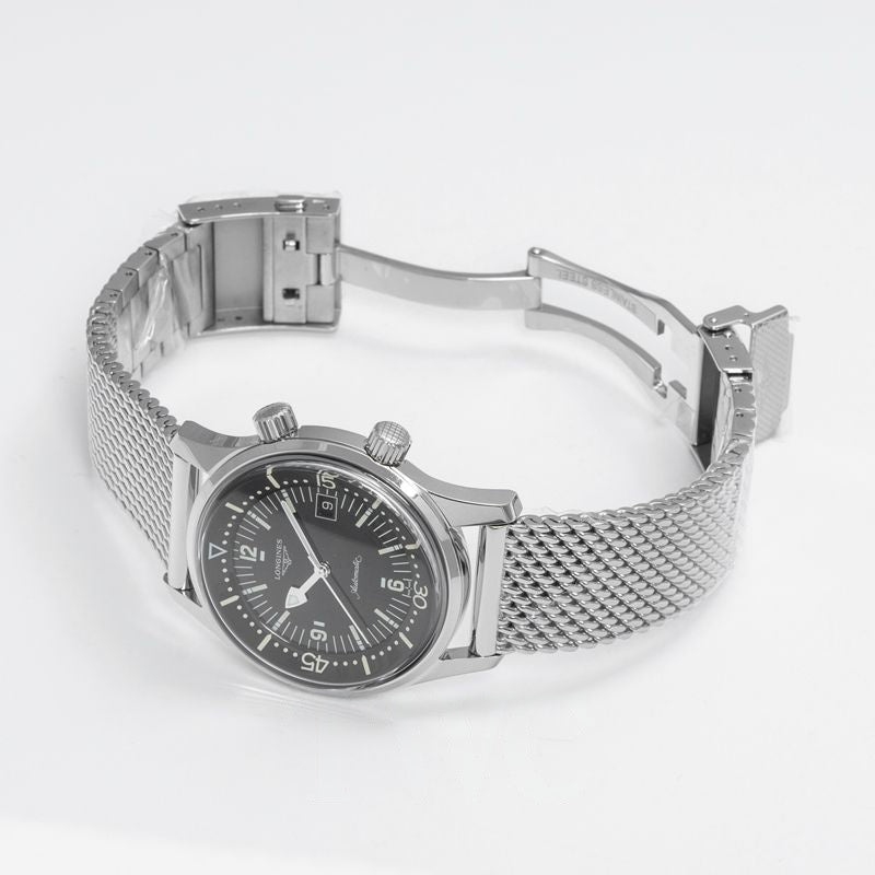 Longines Heritage 42 mm schwarzes Zifferblatt aus Edelstahl L37744506