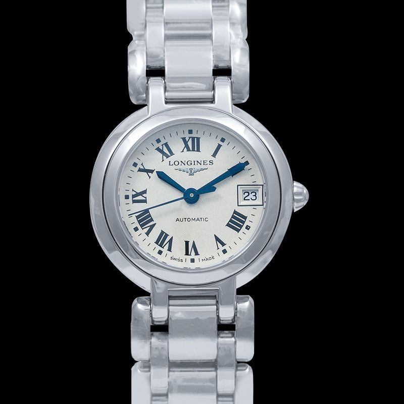 Longines PrimaLuna 26,5 mm silbernes Zifferblatt aus Edelstahl L81114716