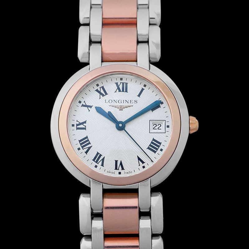 Longines PrimaLuna 30 mm silbernes Zifferblatt aus Edelstahl, Roségold L81125786