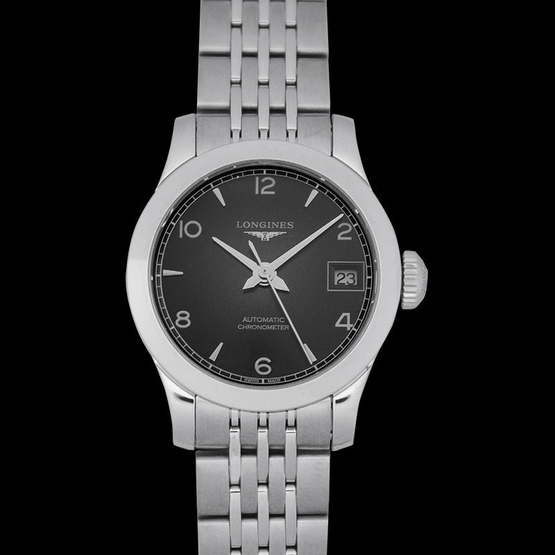 Record Schwarzes Zifferblatt aus Edelstahl L23204566
