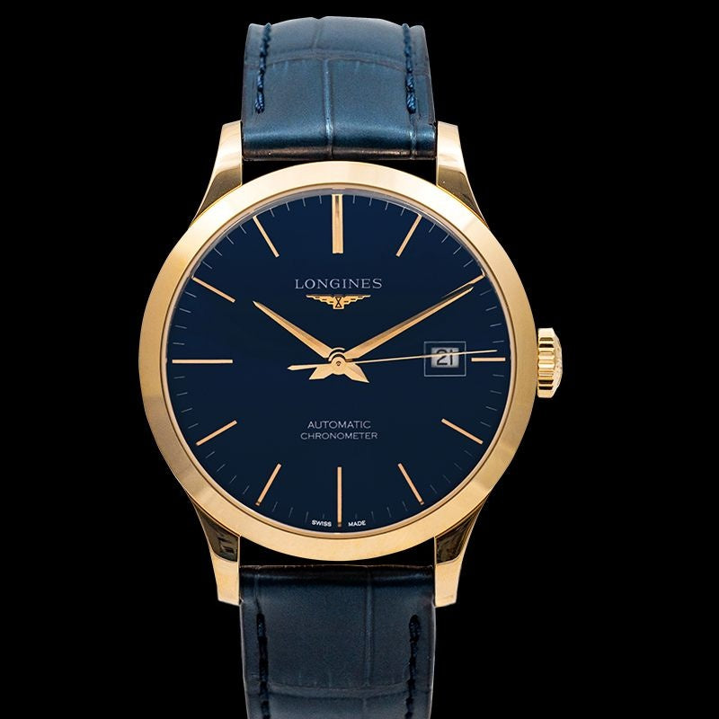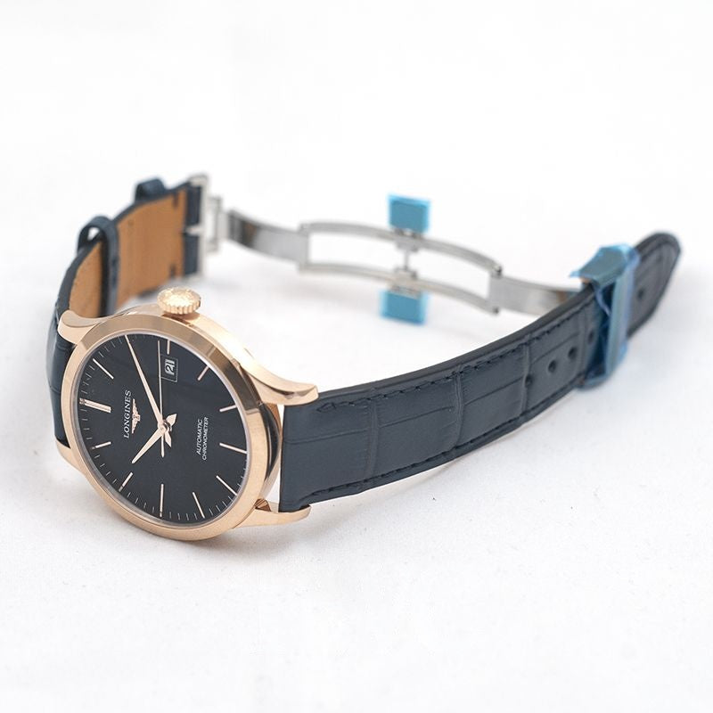 Record 38,5 mm blaues Zifferblatt in Roségold L28208922