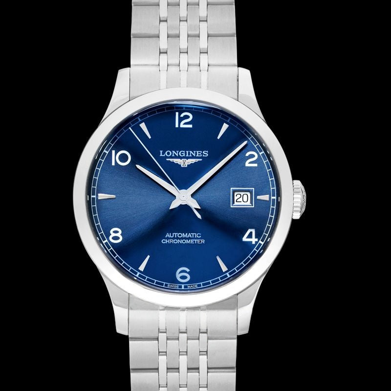 Record 38,5 mm blaues Zifferblatt aus Edelstahl L28204966