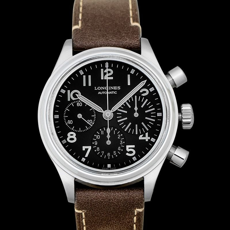 Longines Heritage 41 mm schwarzes Zifferblatt aus Edelstahl L28164532