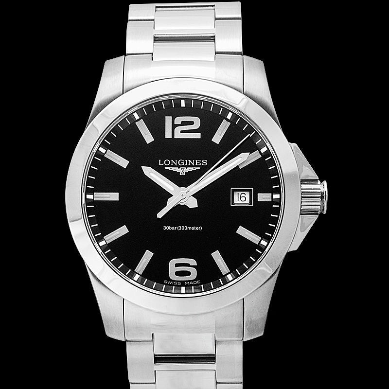 Longines Conquest 41,00 mm, schwarz lackiertes, poliertes Zifferblatt aus Edelstahl L37594586