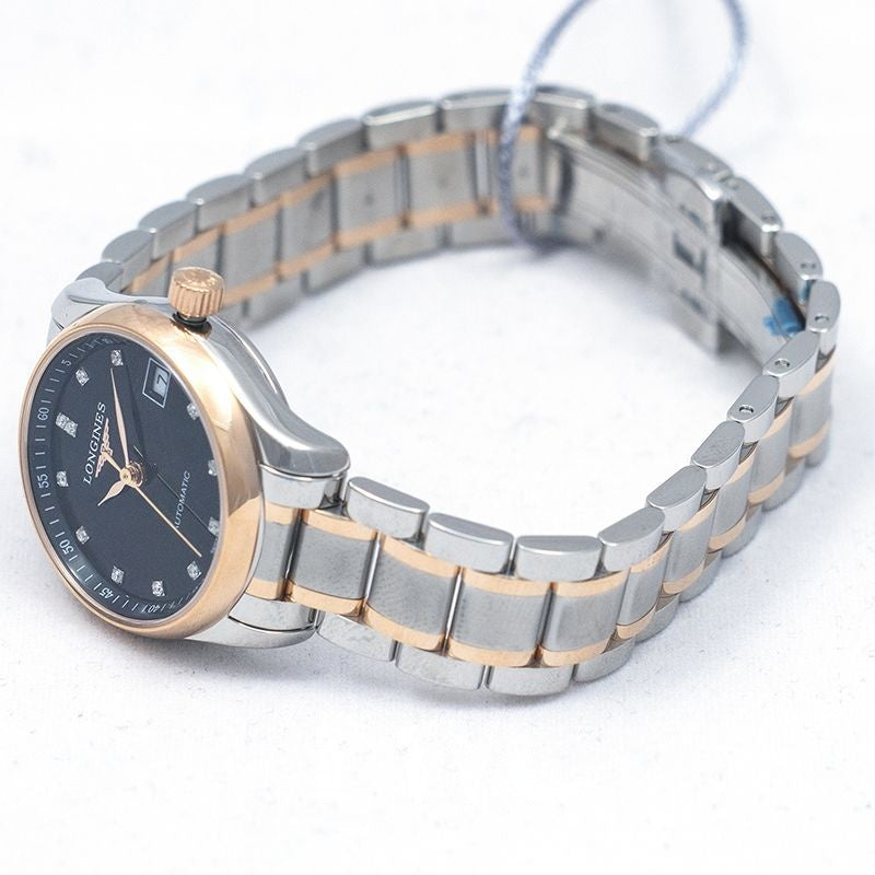Die Longines Master Collection 25,5 mm schwarzes Zifferblatt aus Edelstahl, Gelbgold L21285577
