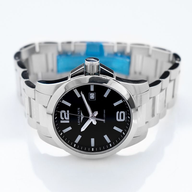 Longines Conquest 43 mm schwarzes Zifferblatt aus Edelstahl L37604566