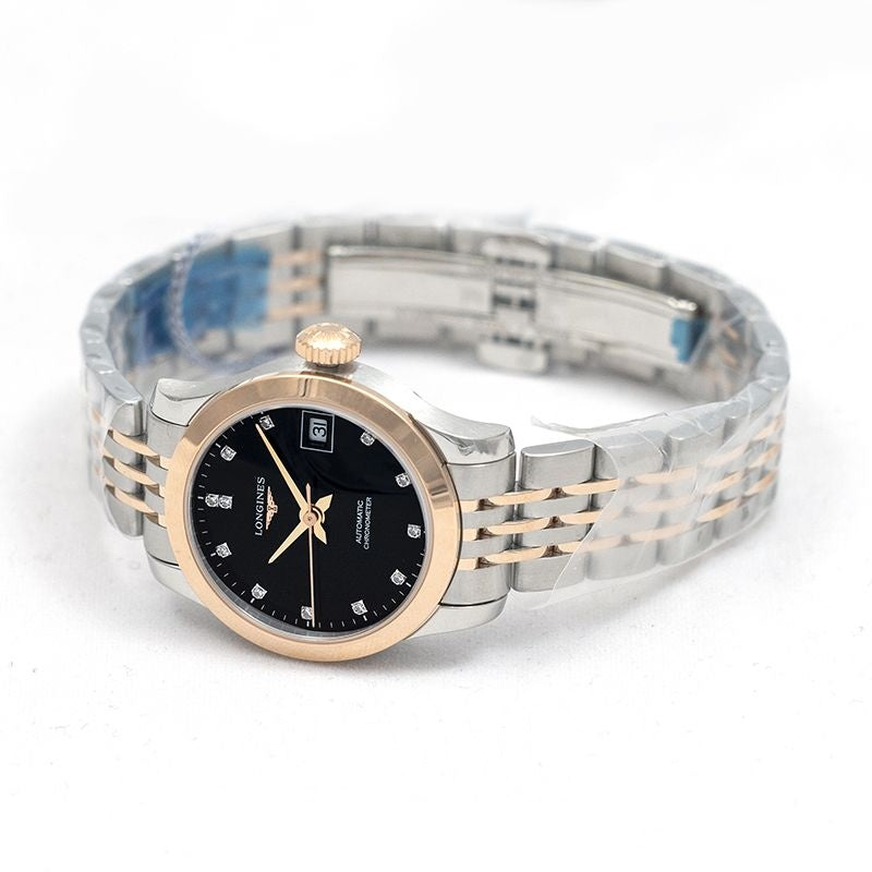 Record – 26,00 mm, schwarz lackiertes, poliertes Zifferblatt aus Edelstahl, Kappe aus 18 Karat Roségold 200 L23205577