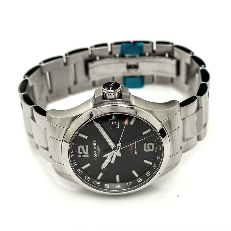 Longines Conquest – 43,00 mm schwarzes Zifferblatt aus Edelstahl, geschnitzt, L37284566