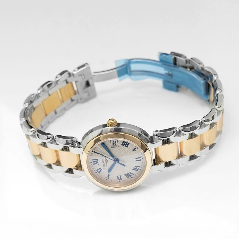 Longines PrimaLuna 30 mm silbernes Zifferblatt aus Edelstahl, Roségold L81125786