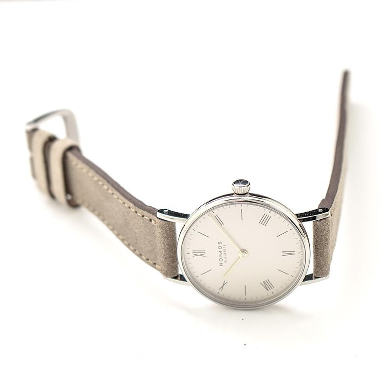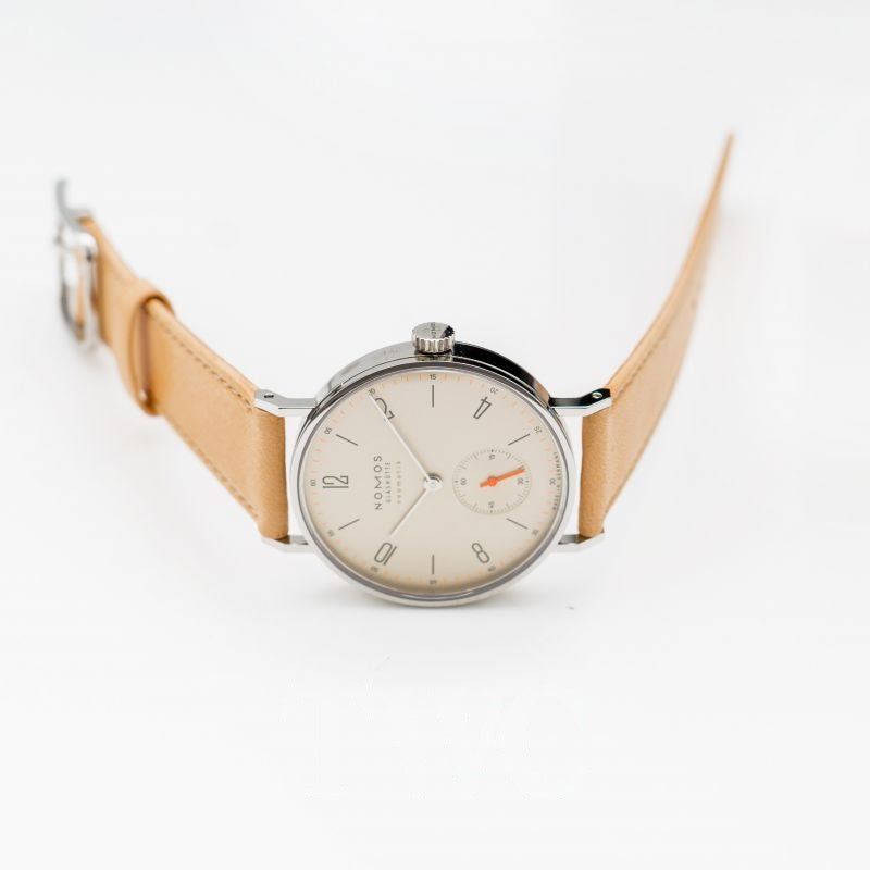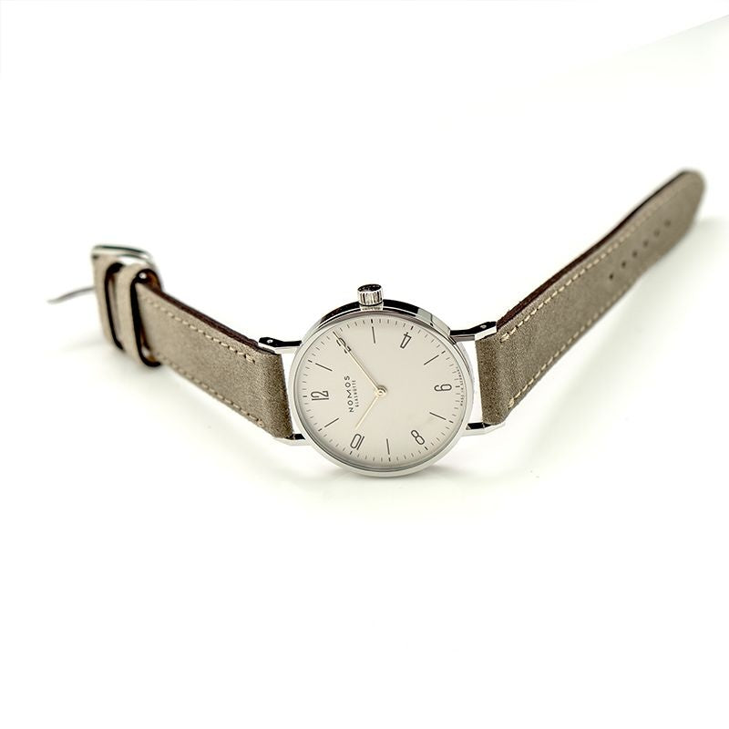 Tangente 32,8 mm weiß versilbert Zifferblatt aus Edelstahl, zweiteiliger Saphirglasboden 127