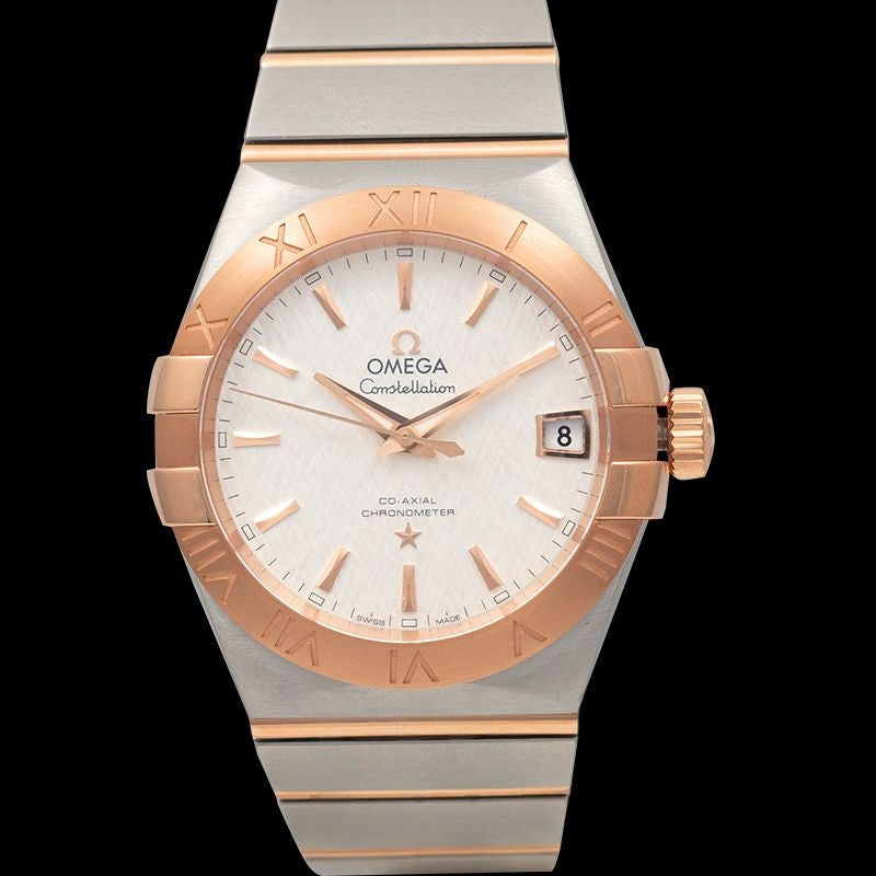 Die Constellation-Linie symbolisiert OMEGAs Innovationsgeist, Präzisionsarbeit und das Streben nach Exzellenz. Die Uhr 123.20.38.21.02.007 ist mit ihrem weißen, silbrig-seidenartigen Zifferblatt sowie den goldenen Zeigern und Indizes eine Klasse für sich. Die Lünette sitzt auf einem 38-mm-Gehäuse und besteht aus demselben Gold wie die zuvor genannten Elemente. Sie verfügt über eingravierte römische Ziffern und die für alle Uhren dieser Kollektion typischen „Griffes“. Das Armband ist aus hochwertigem Edelstahl gefertigt und mit goldenen Gliedern versehen, die zu den anderen Goldelementen passen. Angetrieben vom Omega Co-Axial-Kaliber 8500 zeigt diese Uhr stets die genaue Zeit an.