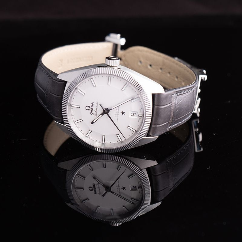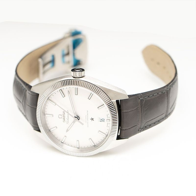 Der OMEGA Constellation Globemaster Co-Axial Master Chronometer 130.33.39.21.02.001 wurde aktualisiert und verdient sich den Titel des weltweit ersten Master Chronometers. Seine moderne Technologie präsentiert sich in einem edlen Edelstahlgehäuse mit kratzfester, geriffelter Hartmetalllünette und einem markanten opalisierend-silbernen „Pie Pan“-Zifferblatt mit leuchtenden Indizes und Zeigern. Über der 6-Uhr-Position prangt ein geschwärzter Constellation-Stern. Auf dem Gehäuseboden der 39-mm-Uhr ist ein zentrales Observatoriumsmedaillon aus Edelstahl eingeprägt. Zifferblatt und Gehäuseboden werden durch ein gewölbtes, kratzfestes und entspiegeltes Saphirglas geschützt. Hinter dem Gehäuseboden verbirgt sich das revolutionäre, antimagnetische OMEGA Co-Axial Master Chronometer Kaliber 8900.