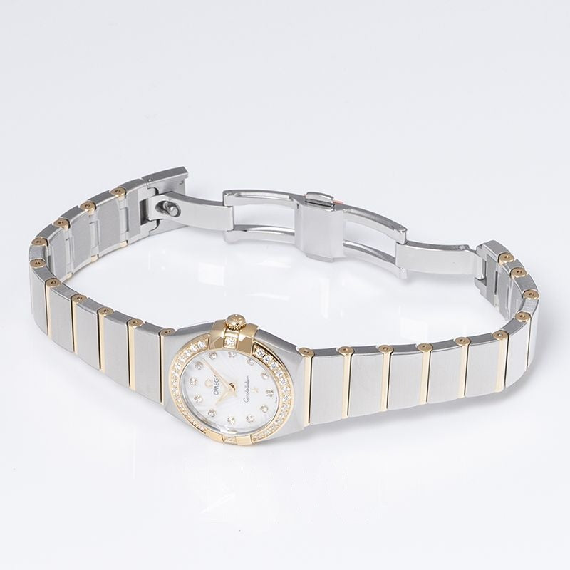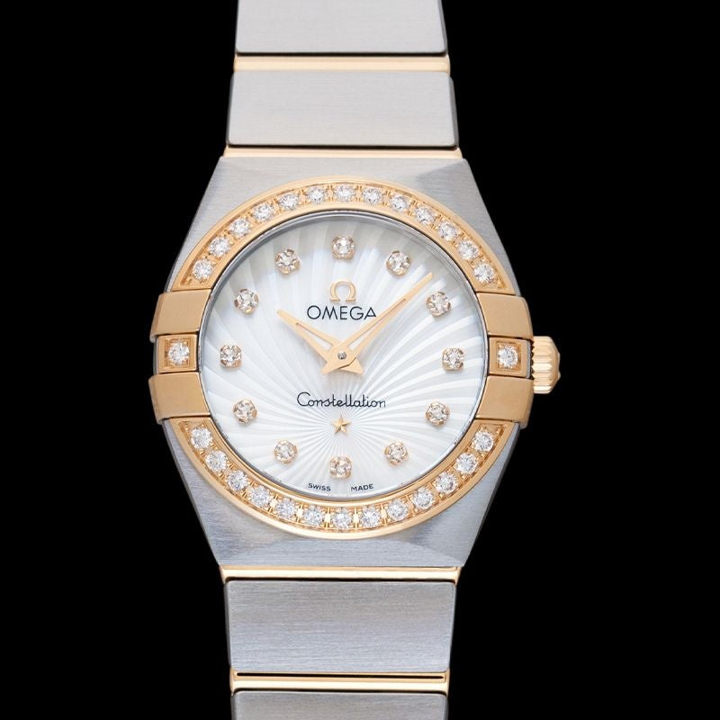 Constellation 24 mm Perlmuttzifferblatt aus Edelstahl, 18 Karat Gelbgold 123.25.24.60.55.004