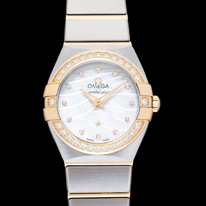 Constellation 24 mm Perlmuttzifferblatt aus Edelstahl, 18 Karat Gelbgold 123.25.24.60.55.011