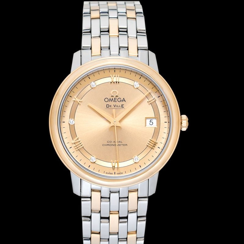 De Ville 36,8 mm Champagner-Zifferblatt aus Edelstahl, 18 Karat Gelbgold 424.20.37.20.58.002