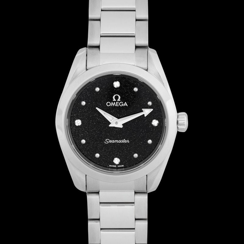 Seamaster 28 mm schwarzes Zifferblatt aus Edelstahl 220.10.28.60.51.001