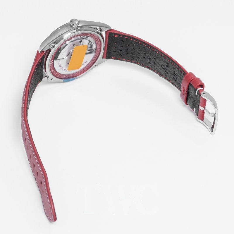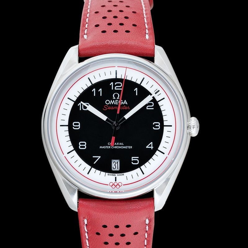 Die OMEGA Seamaster Olympic Official Timekeeper ist eine stilvolle Sportuhr, die die langjährige Zusammenarbeit des Unternehmens mit den Olympischen Spielen würdigt. Dieses Modell verfügt über ein 39,5-mm-Edelstahlgehäuse und ein dezentes rotes, mikroperforiertes Lederarmband, das der Uhr 522.32.40.20.01.004 eine verspielte und sportliche Note verleiht. Das schwarze Zifferblatt mit weißen arabischen Ziffern wird durch einen weißen Außenrand mit schwarzen Markierungen abgerundet. Die Stunden- und Minutenzeiger sind weiß mit schwarzer Basis, während der Sekundenzeiger rot und auffällig ist. Angetrieben vom Master Chronometer Kaliber 8800 wurden nur 2.032 Exemplare dieses Modells hergestellt.