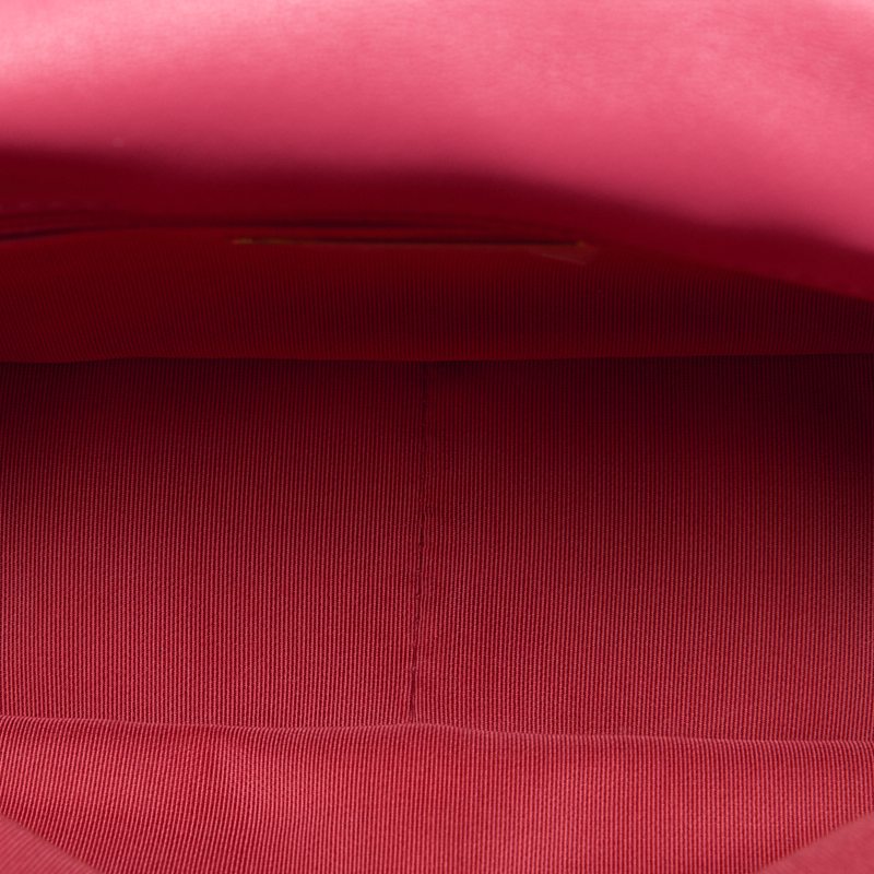 - Elegante Hardware: Verziert mit einer Mischung aus Gold- und Silberbeschlägen, die einen schicken Kontrast zum rosa Lammleder bilden.