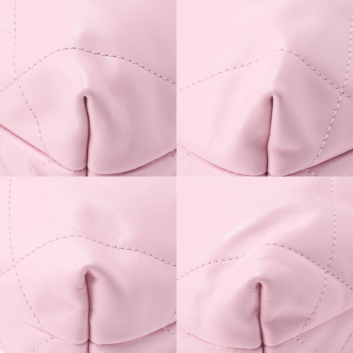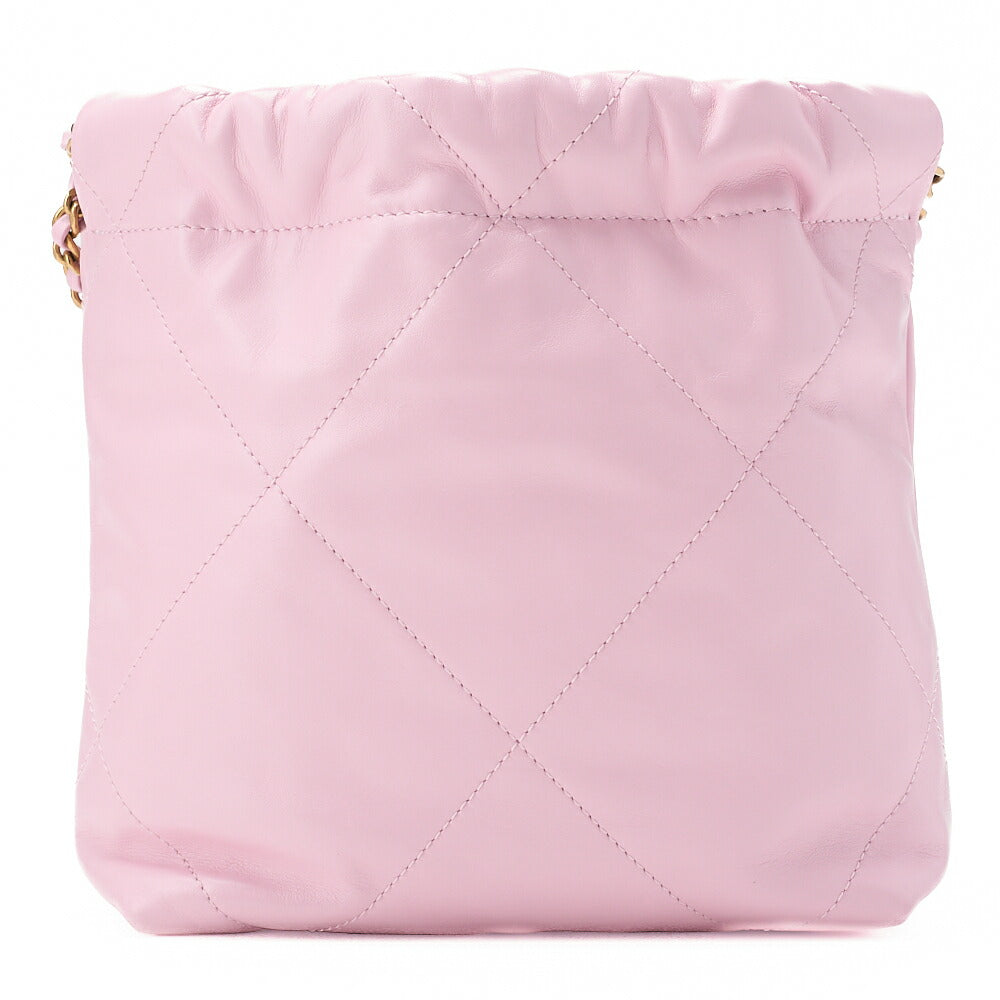 Pre-Owned 22 Mini-Umhängetasche mit Kordelzug und Kette, Kalbsleder, Rosa, goldfarbene Metallteile, Pre-Owned