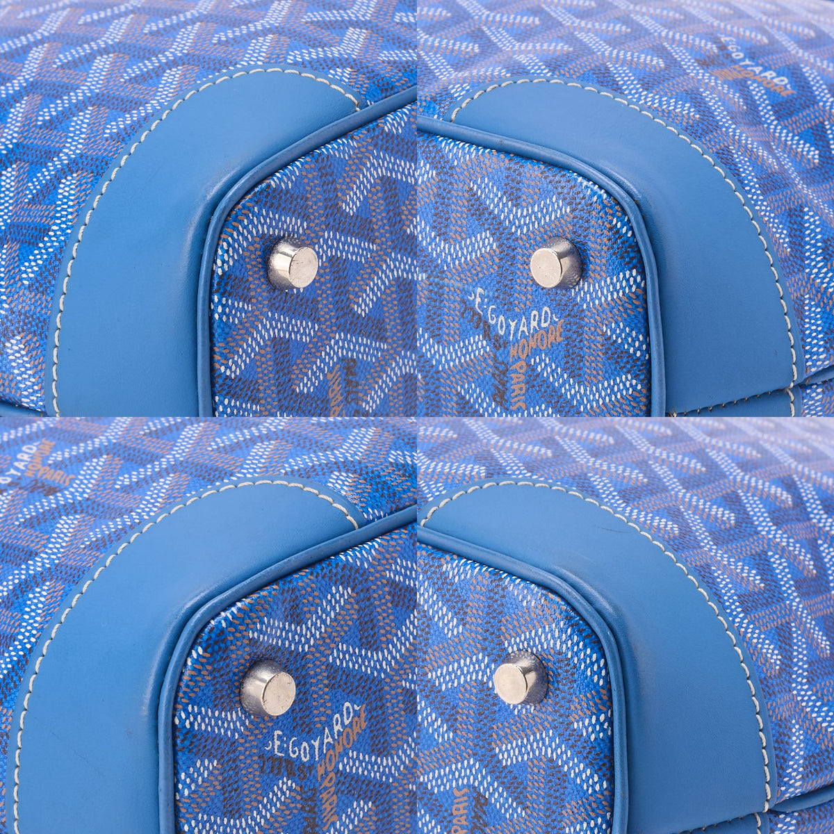 Wir präsentieren die GOYARD Goyard Beluga Handtasche , eine luxuriöse Tragetasche aus hochwertigem, beschichtetem Canvas in einem atemberaubenden Blauton mit eleganten silbernen Beschlägen. Dieses exquisite Stück ist nicht nur eine Tasche; es ist ein Statement von Eleganz und Stil, das jede Frau besitzen sollte.