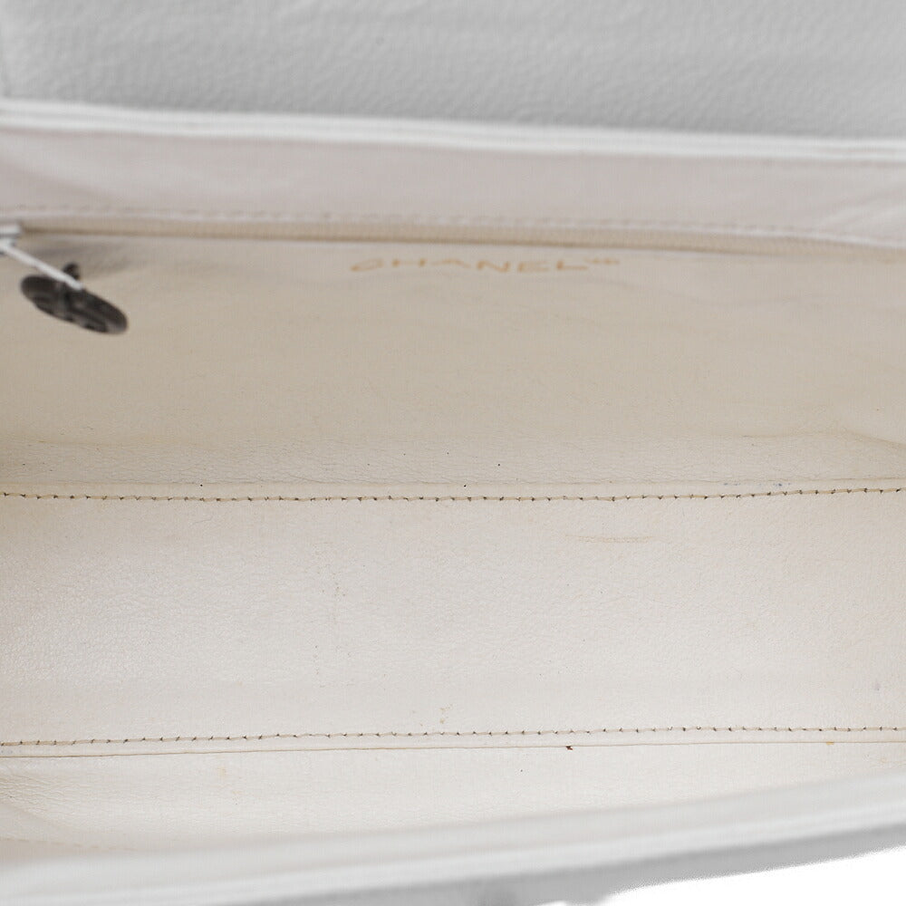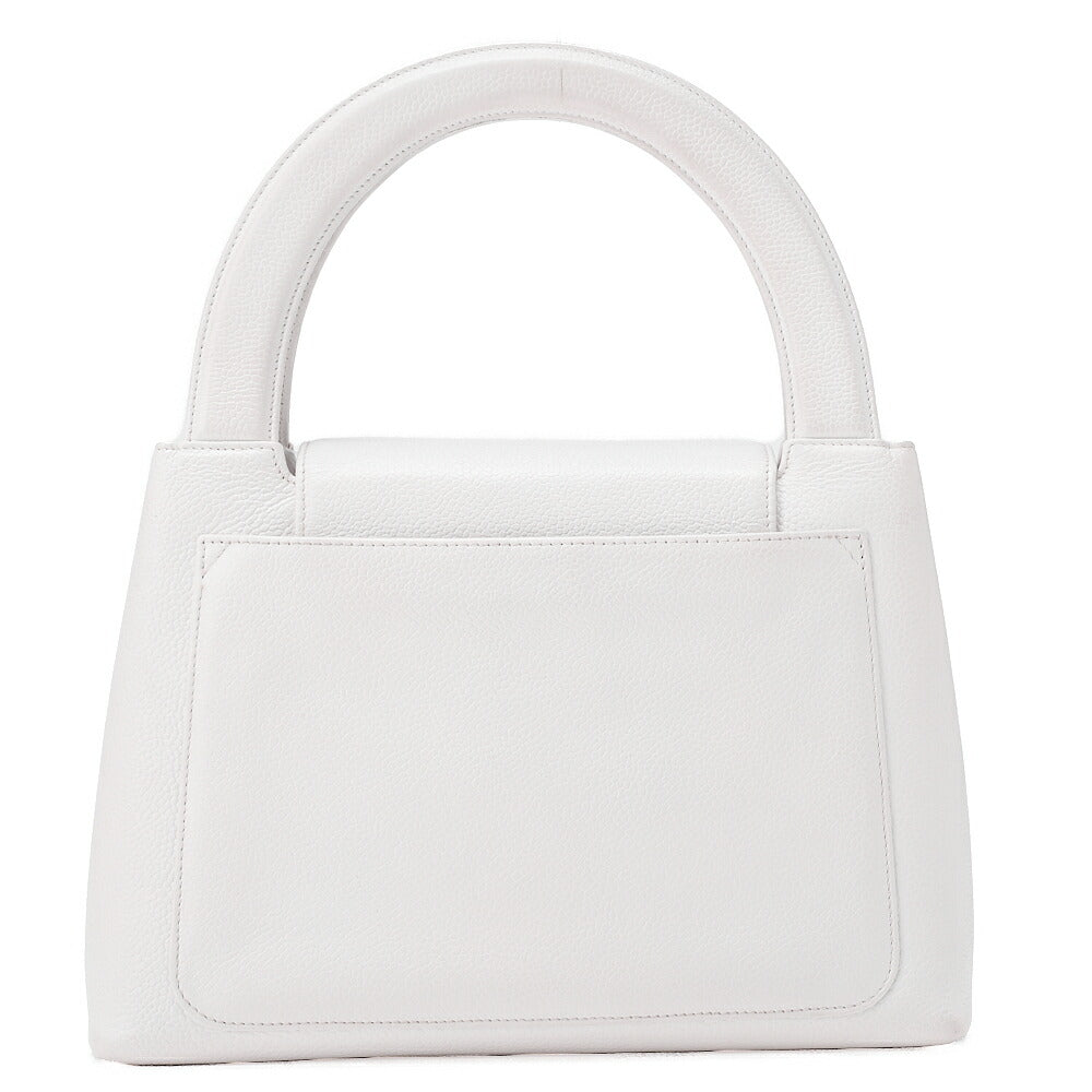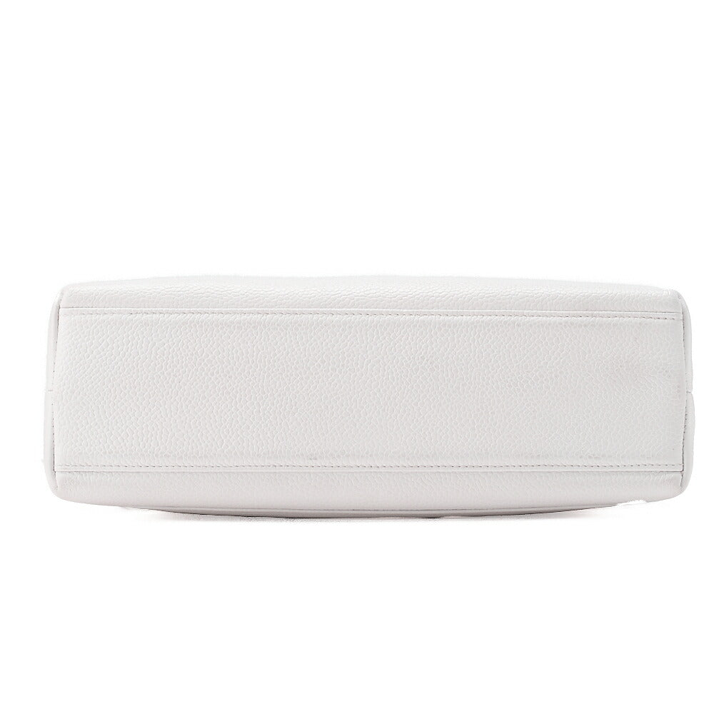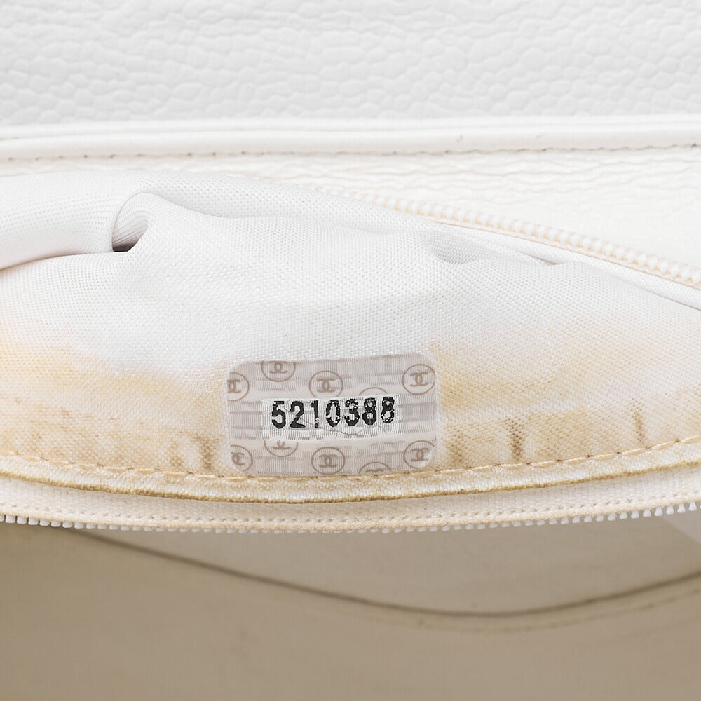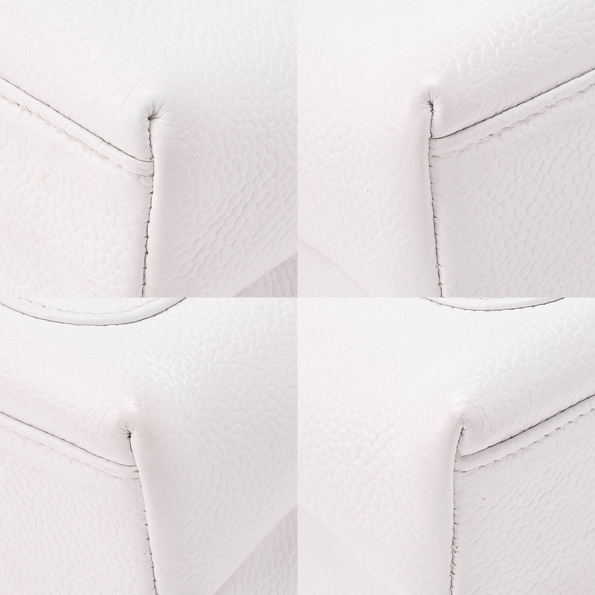 - White caviar leather paired with gold-tone hardware for durable luxury.