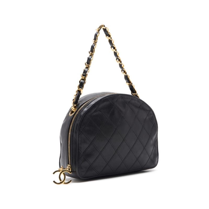 Werten Sie Ihren Stil mit der CHANEL Bicorolle mit Coco Charm Fan Shape Chain Handtasche auf. Diese Handtasche aus luxuriösem Lammleder in klassischem Schwarz ist nicht nur ein modisches Accessoire, sondern ein Statement-Stück, das Eleganz und Raffinesse verkörpert.