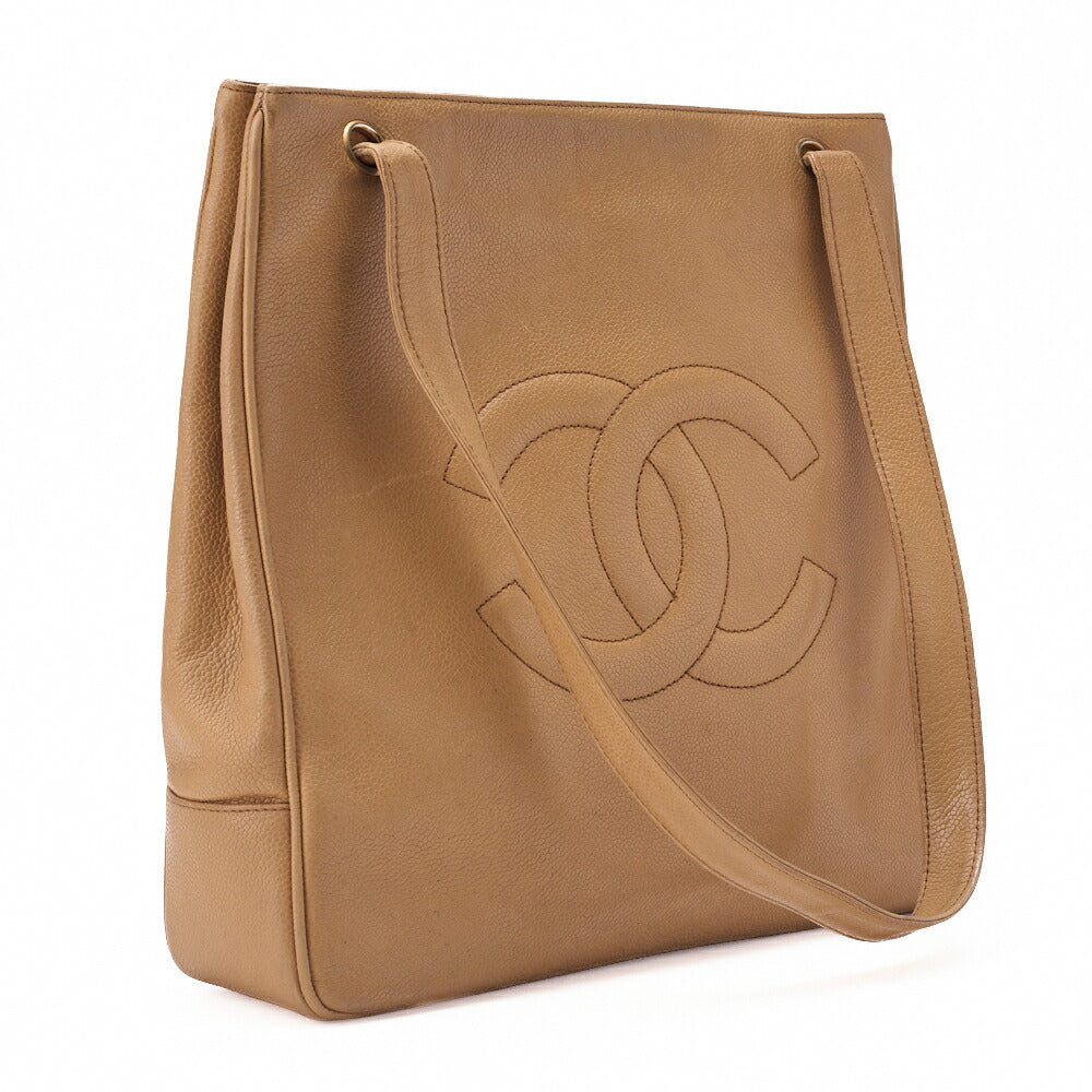 Gebrauchte Big Coco Mark Tote Bag Caviar Skin Beige Goldfarbene Hardware, Gebraucht