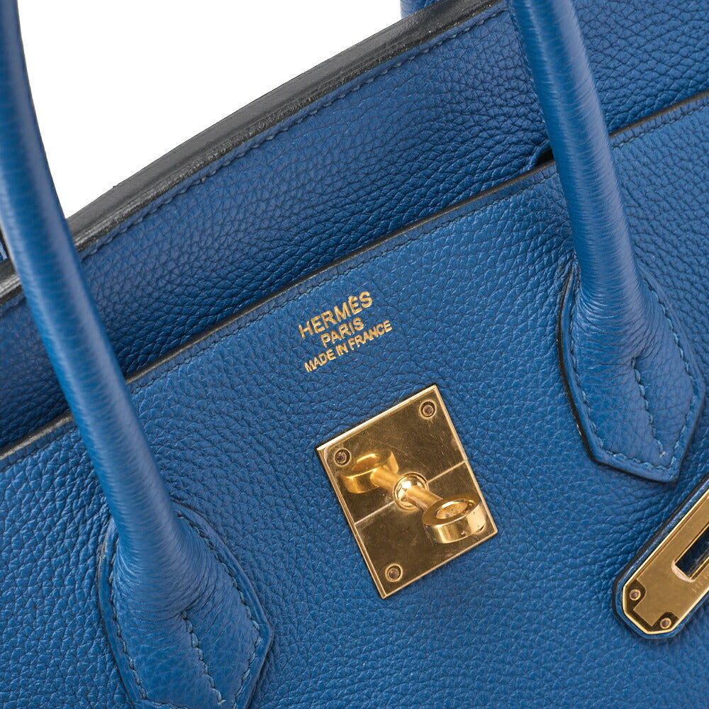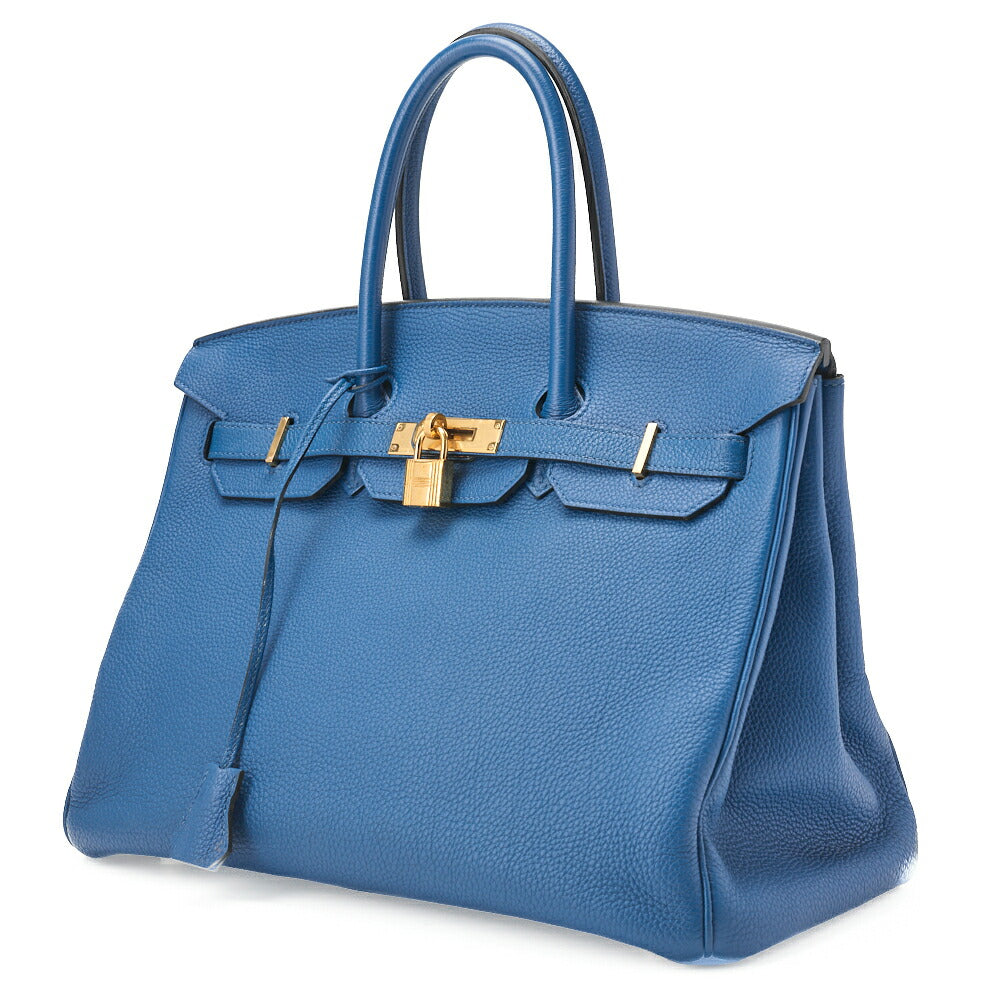 Gebrauchte Birkin 35 Handtasche Fjordleder Fjordblau Goldfarbene Hardware Gebraucht