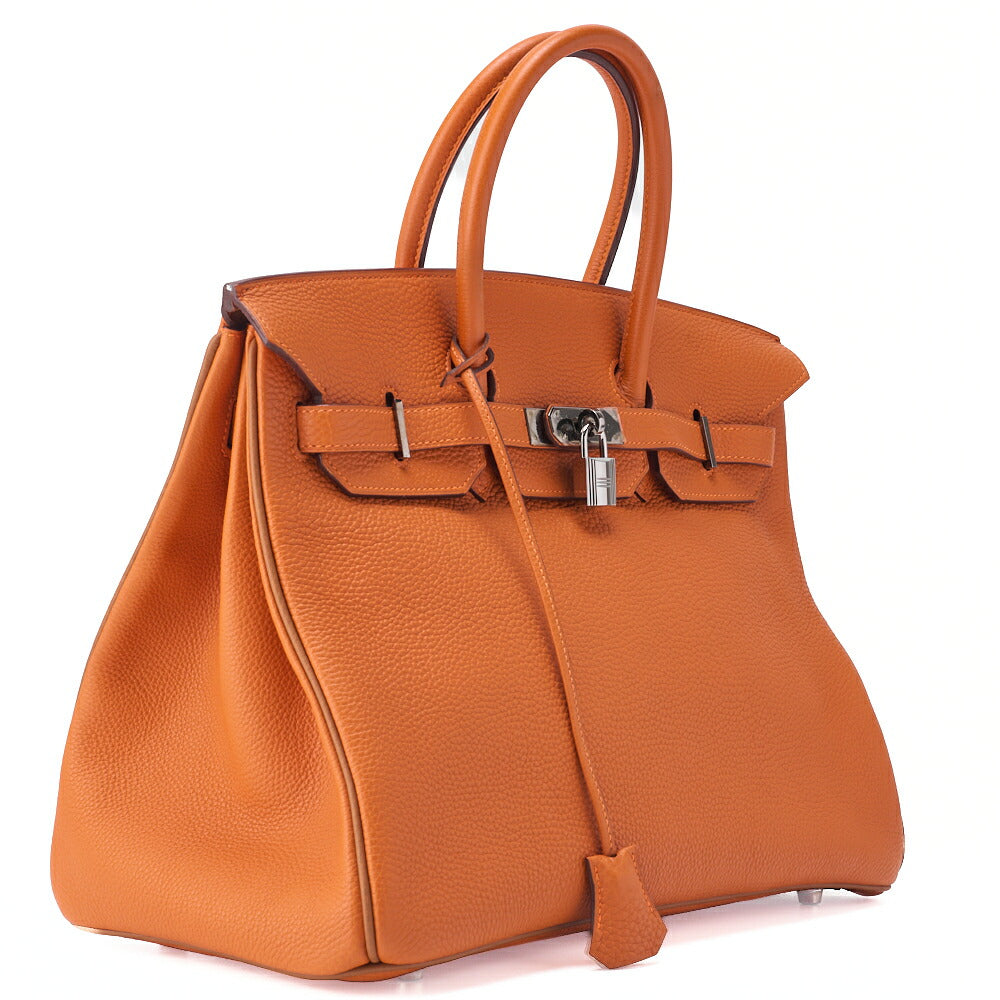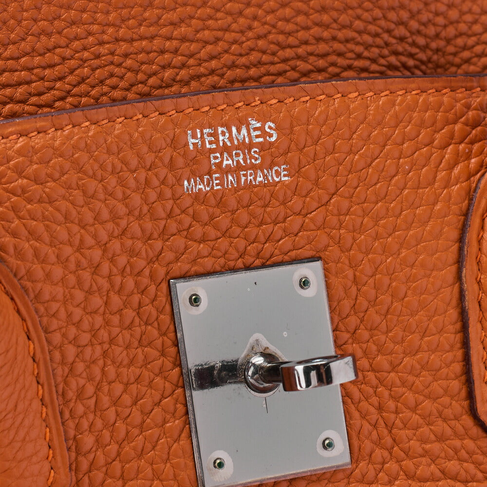 Gebrauchte Birkin 35 Handtasche Togo Orange Silberfarbene Hardware, Gebraucht