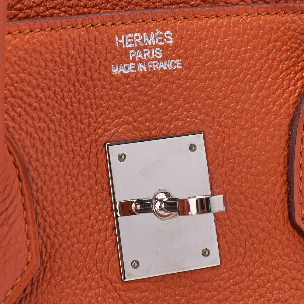 Gebrauchte Birkin 35 Handtasche Togo Orange Silberfarbene Hardware Gebraucht