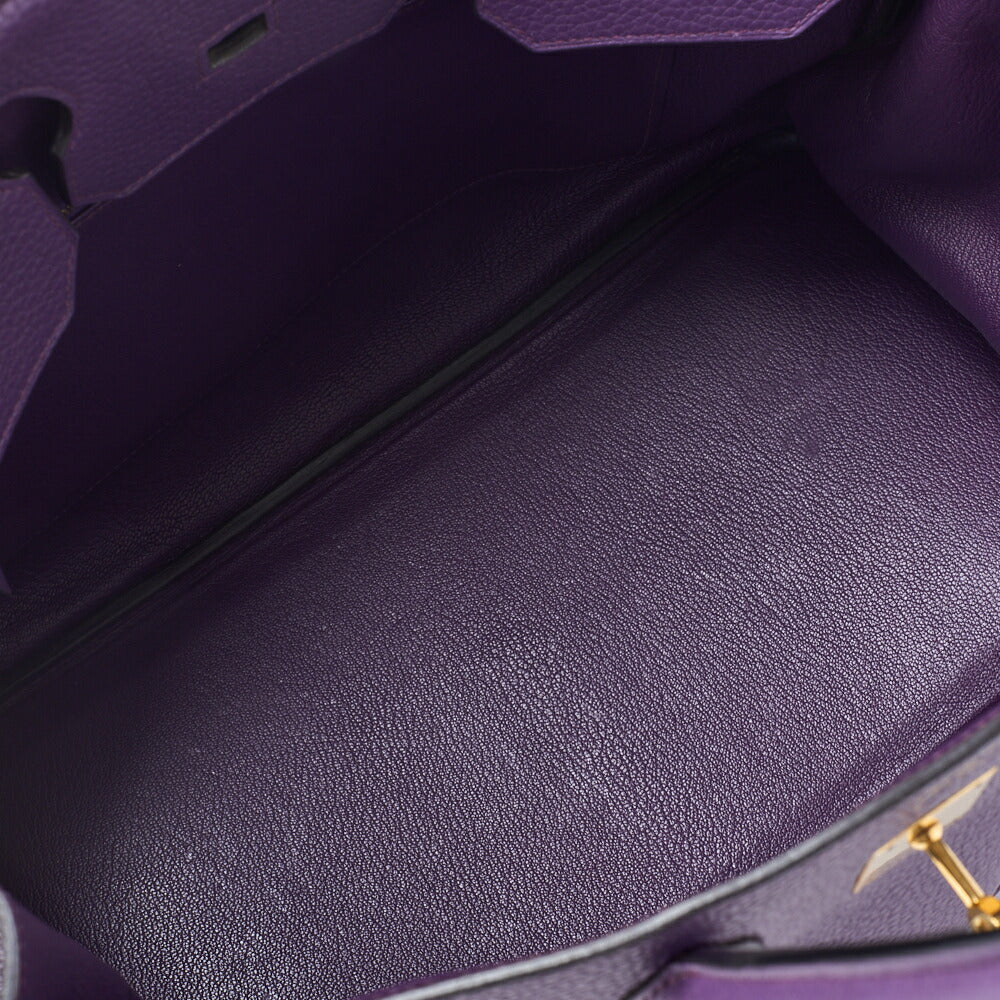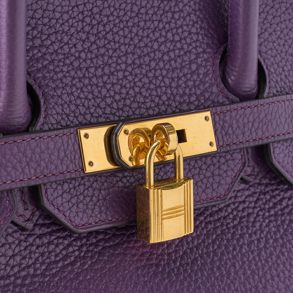 Gebrauchte Birkin 35 Handtasche, Tryon Clemence, Anemone, goldfarbene Metallteile, gebraucht