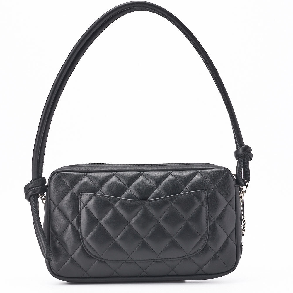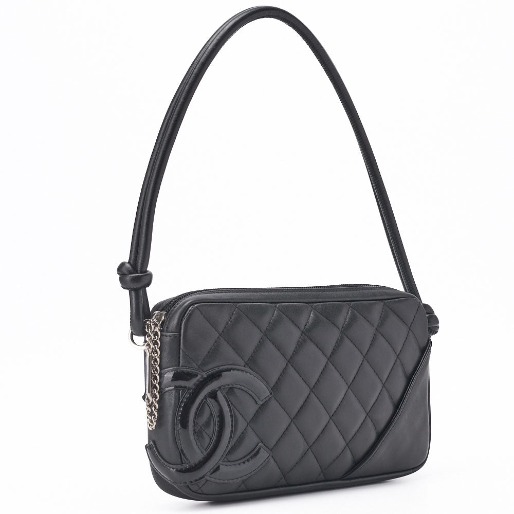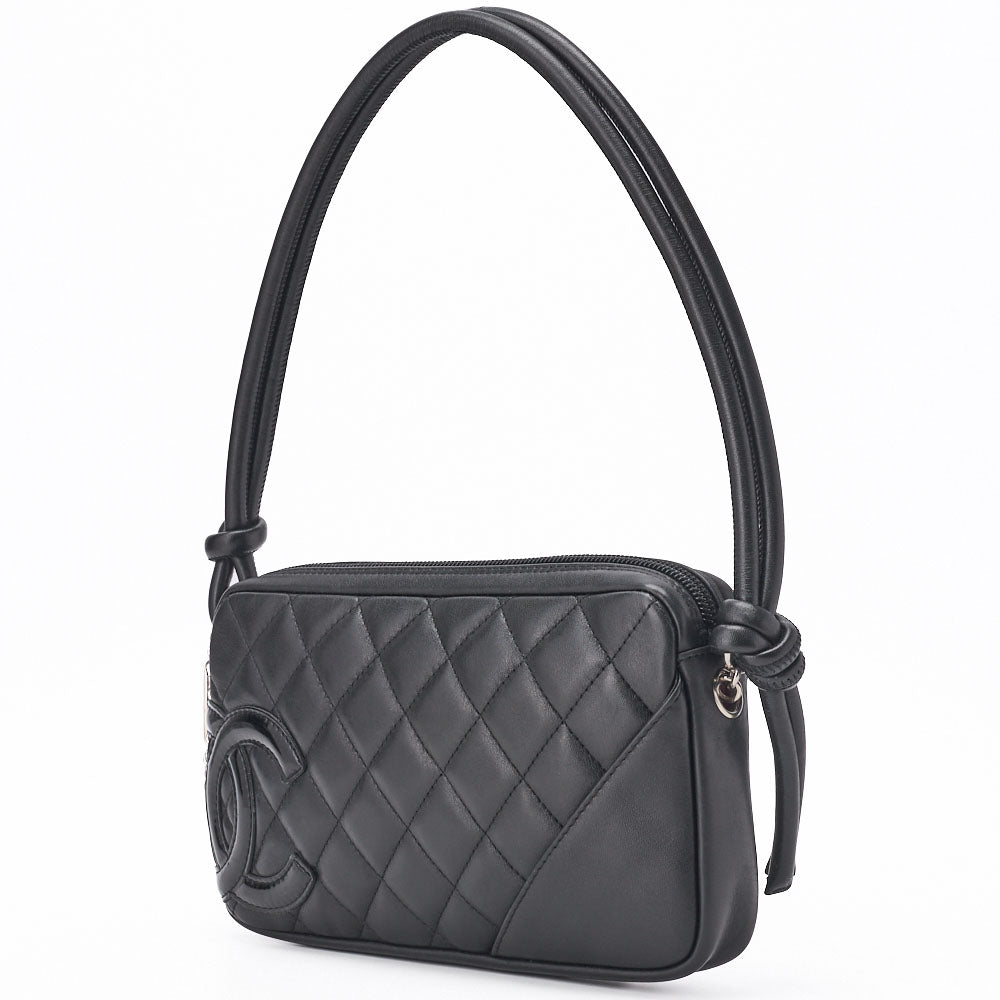 Veredeln Sie Ihren Stil mit der CHANEL Cambon Line Matelassé-Umhängetasche aus schwarzem Kalbsleder mit exquisiten Goldbeschlägen. Diese luxuriöse Damentasche vereint zeitlose Eleganz mit moderner Funktionalität und ist somit das perfekte Accessoire für jeden Anlass.