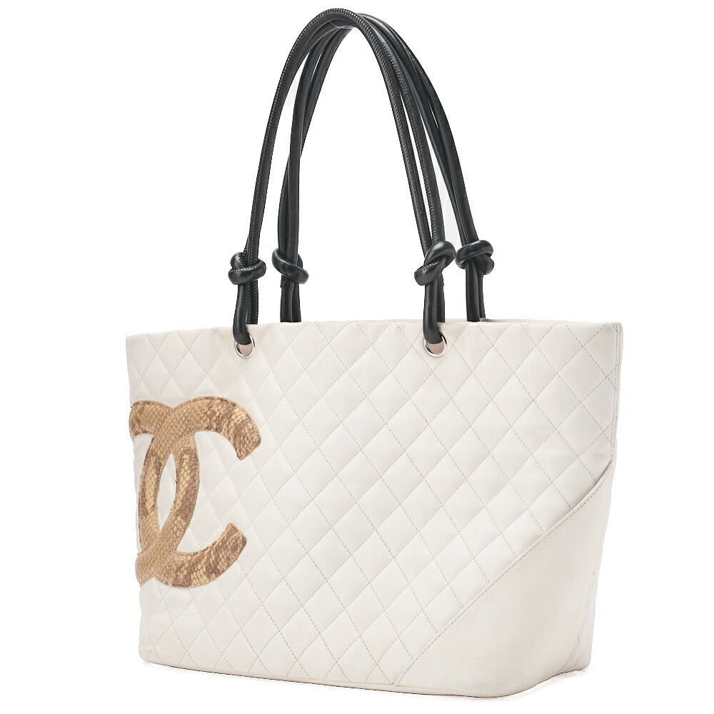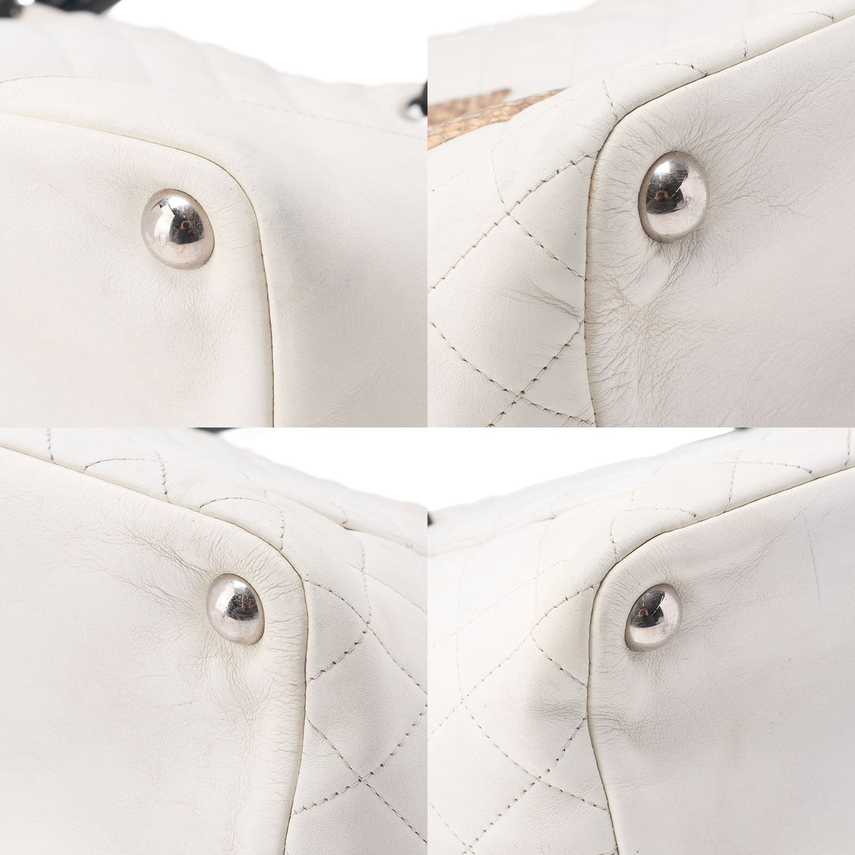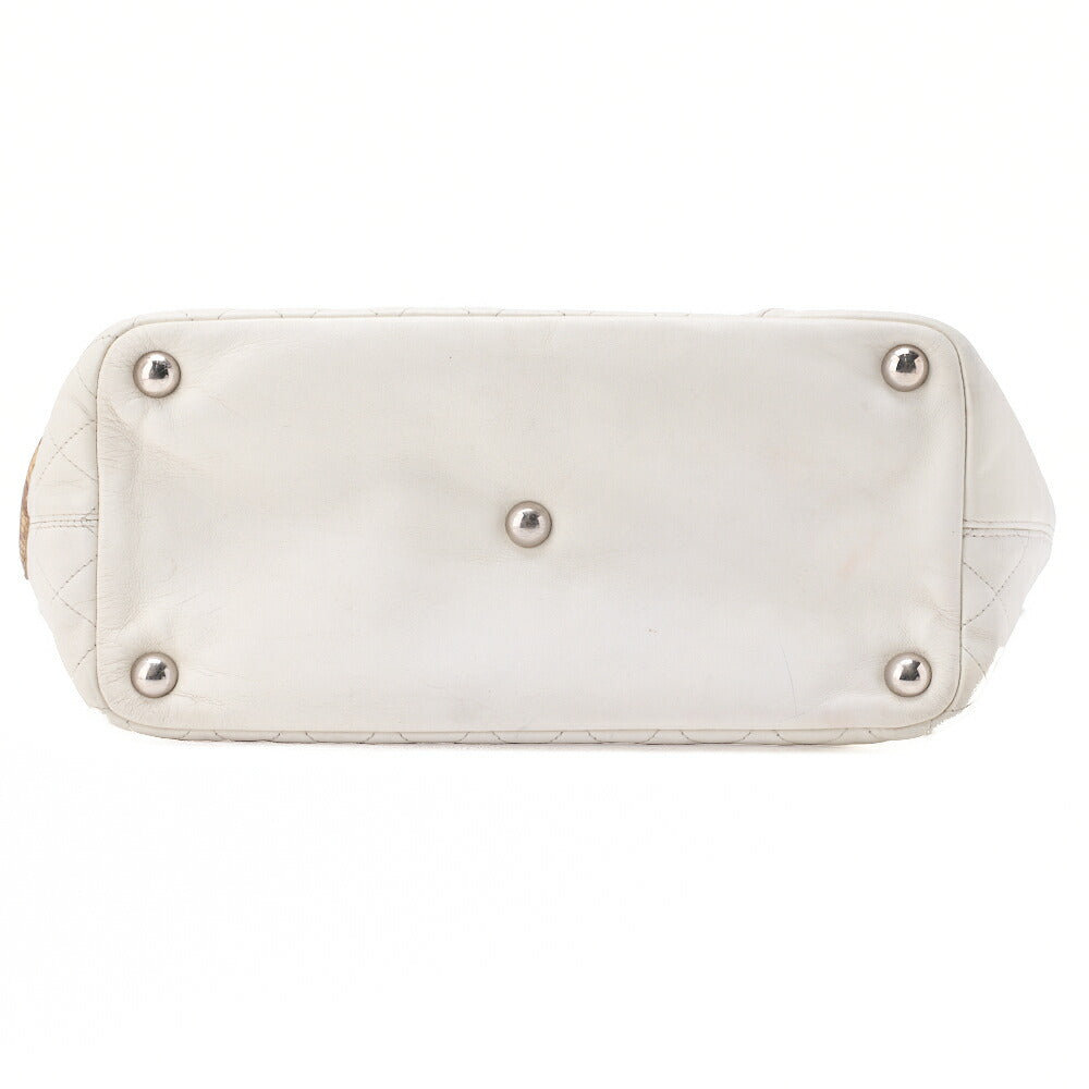 Pre-Owned Tote Bag Matelassé Kalbsleder Python Weiß Silberfarbene Hardware Pre-Owned