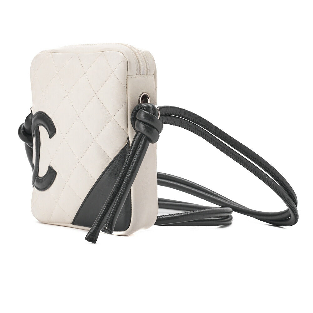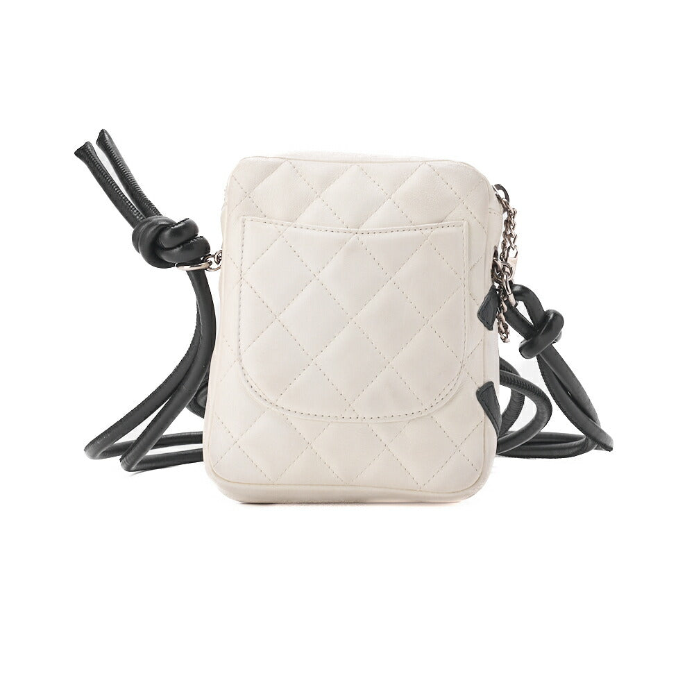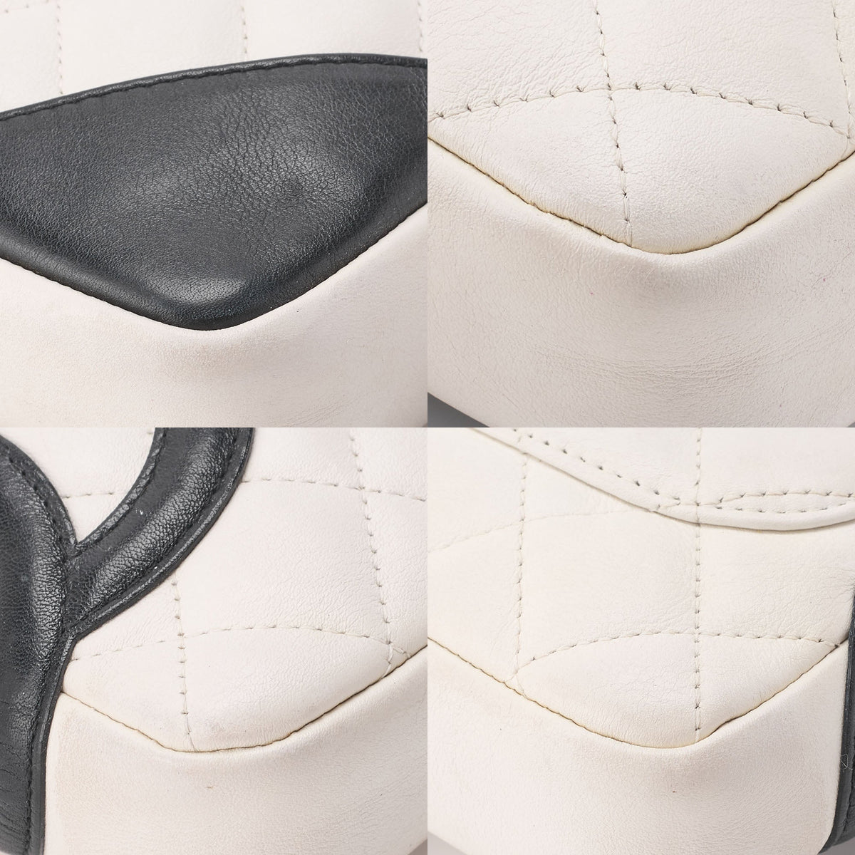 Wir präsentieren die elegante CHANEL Cambon Line Matelassé-Umhängetasche aus weiß-schwarzem Kalbsleder mit Kettenriemen – eine atemberaubende Ergänzung für jede Fashionista. Gefertigt aus luxuriösem Kalbsleder besticht dieses exquisite Stück durch einen raffinierten weißen Korpus mit markanten schwarzen und goldenen Beschlägen. Damit ist es das perfekte Accessoire für legere Ausflüge und glamouröse Abende.
