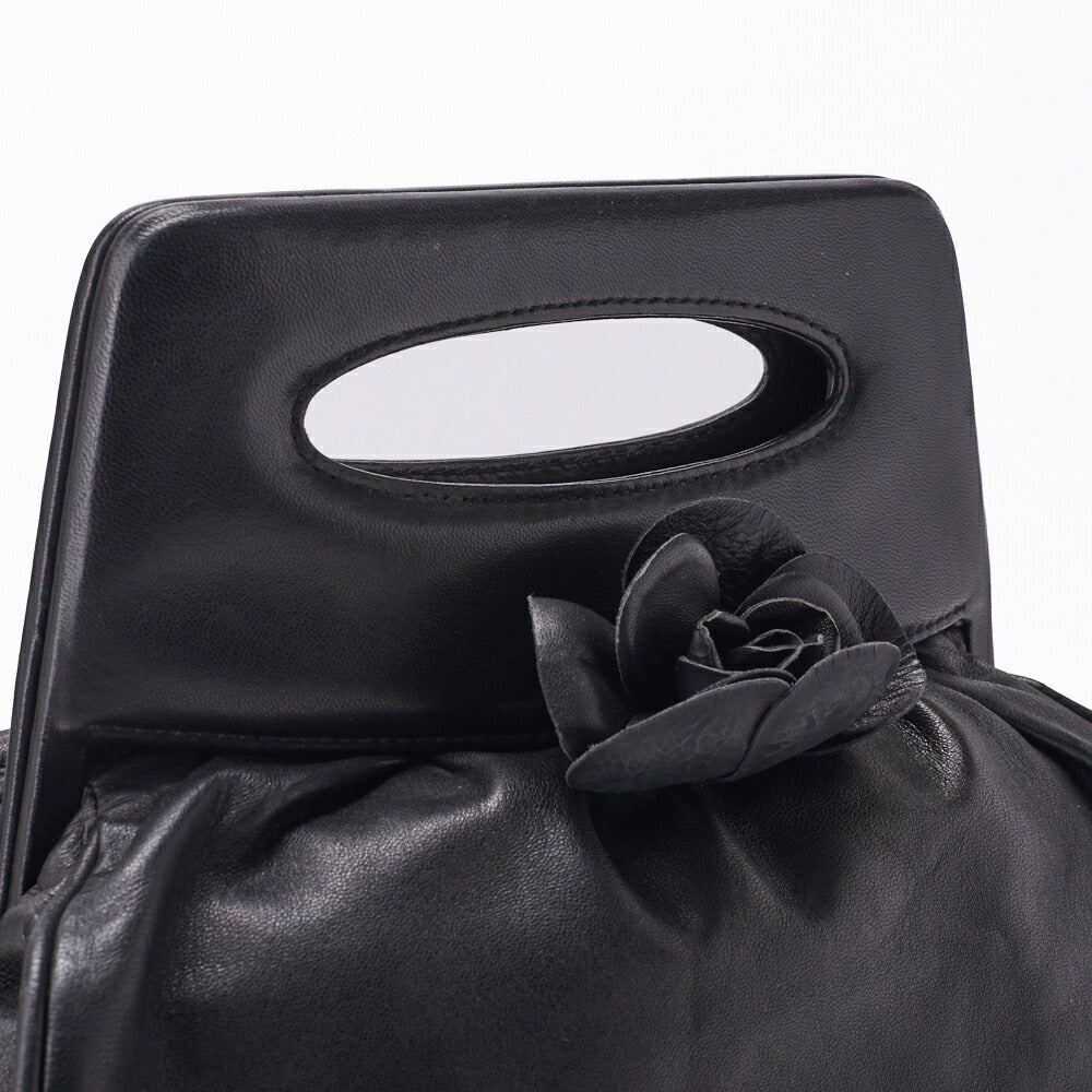 Veredeln Sie Ihren Stil mit der CHANEL Chanel Camellia Gamaguchi Handtasche , einer luxuriösen Mini-Umhängetasche aus exquisitem Lammleder in klassischem Schwarz. Dieses atemberaubende Accessoire besticht durch elegante silberne Beschläge, die seine raffinierte Ästhetik perfekt ergänzen und es zu einem Must-have für jede modebewusste Frau machen.