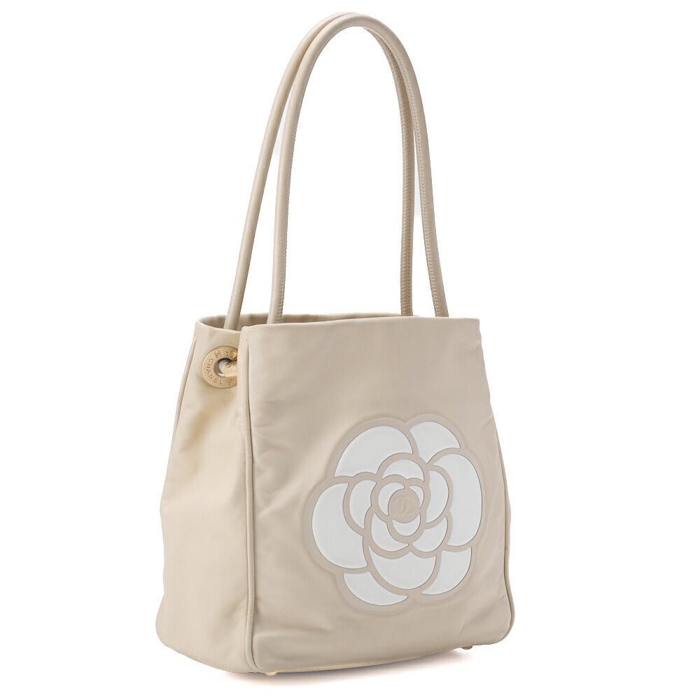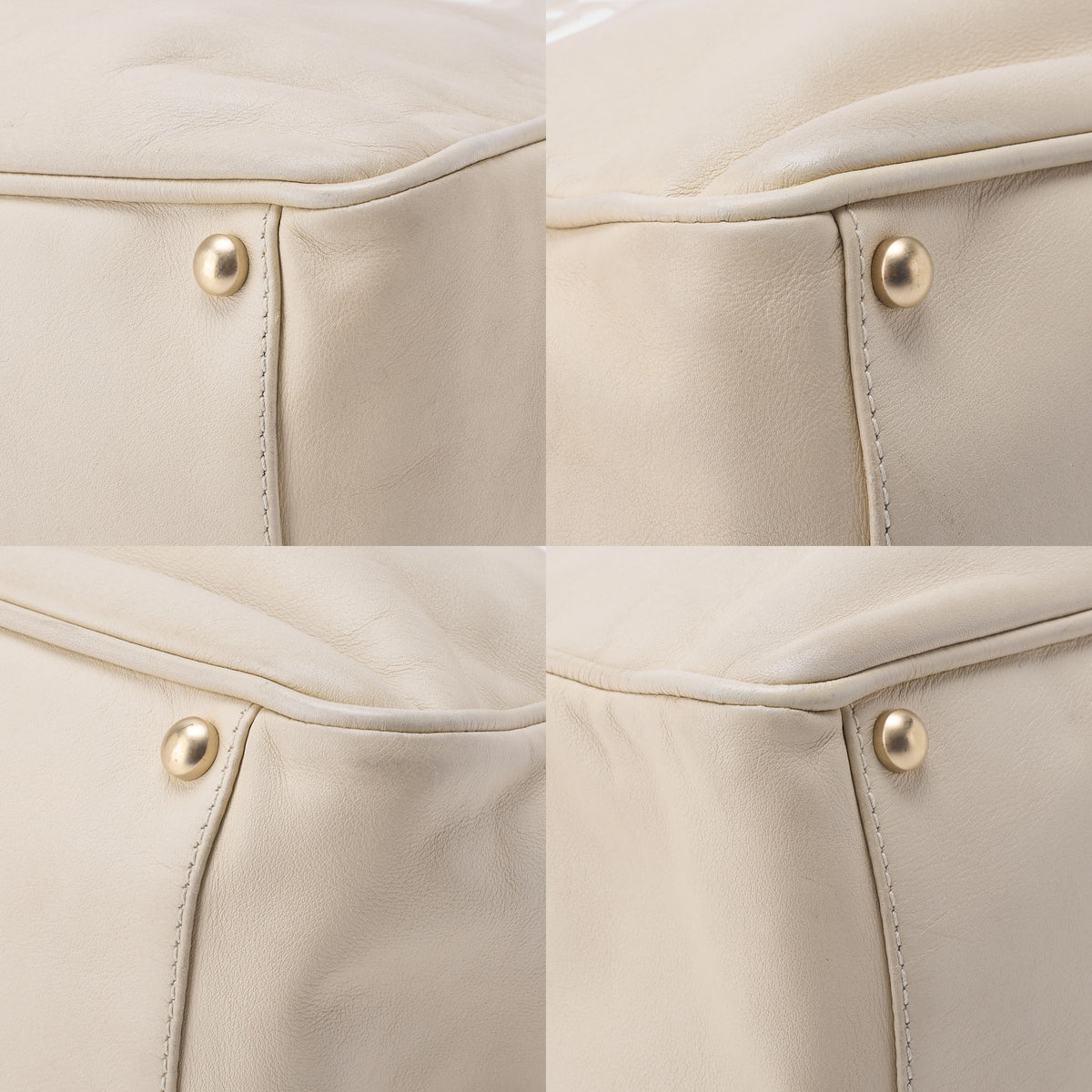 Gebrauchte Tragetasche Camellia Line Lammleder Elfenbein Goldfarbene Hardware Gebraucht