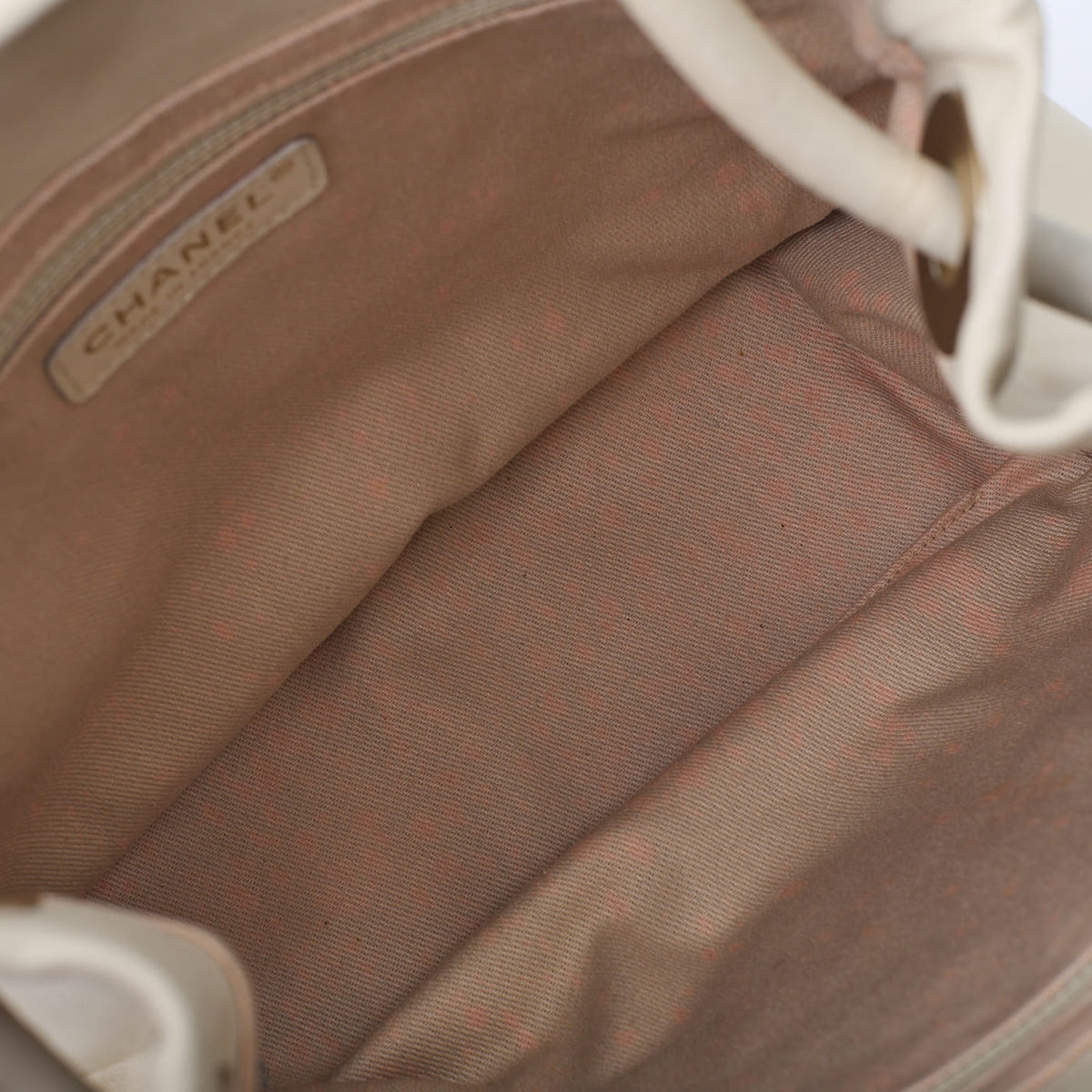 Gebrauchte Tragetasche Camellia Line Lammleder Elfenbein Goldfarbene Hardware Gebraucht