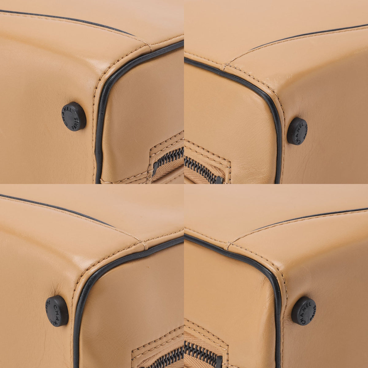 Gebrauchte Handtasche mit Kette, Coco Mark, Kalbsleder, Beige, Schwarze Metallbeschläge, Gebraucht
