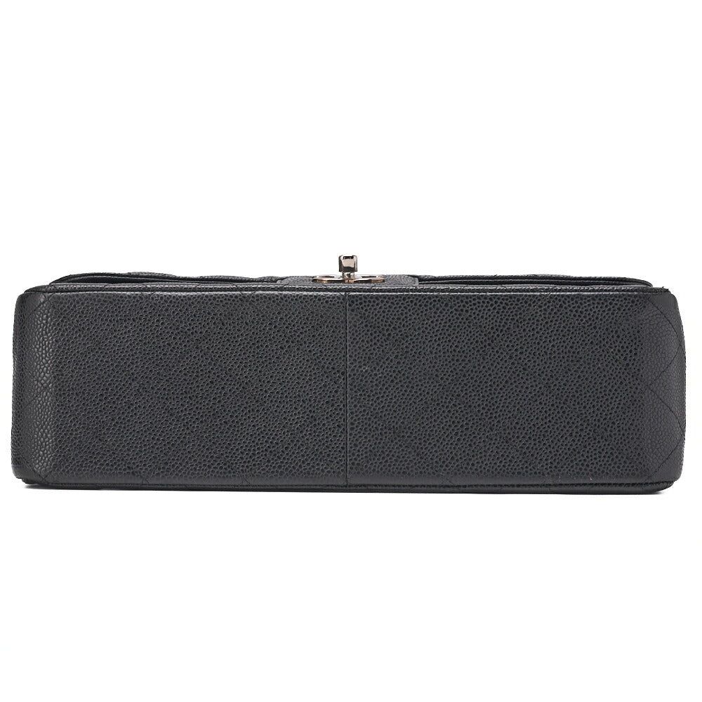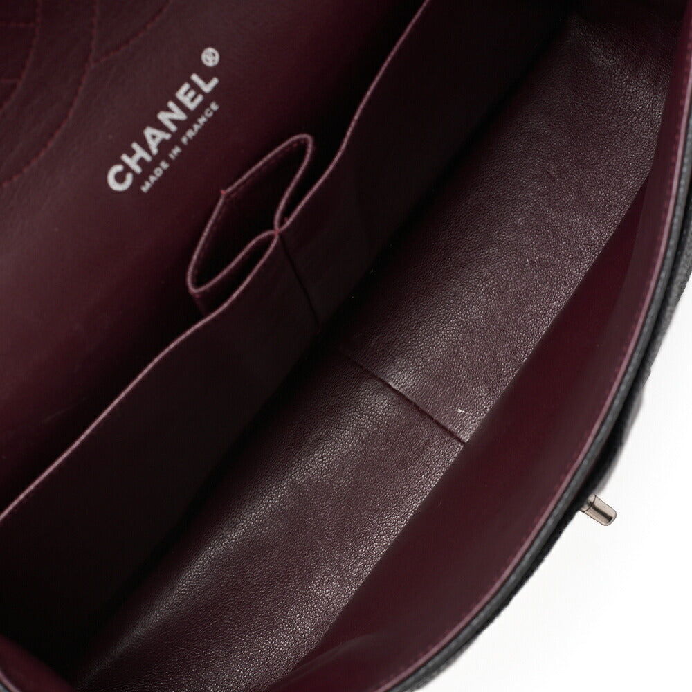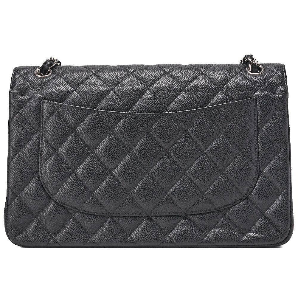 Pre-Owned Chain Shoulder Bag Deca Matelassé 30cm Double Flap Caviar Skin Black Silver-Tone Hardware, Pre-Owned