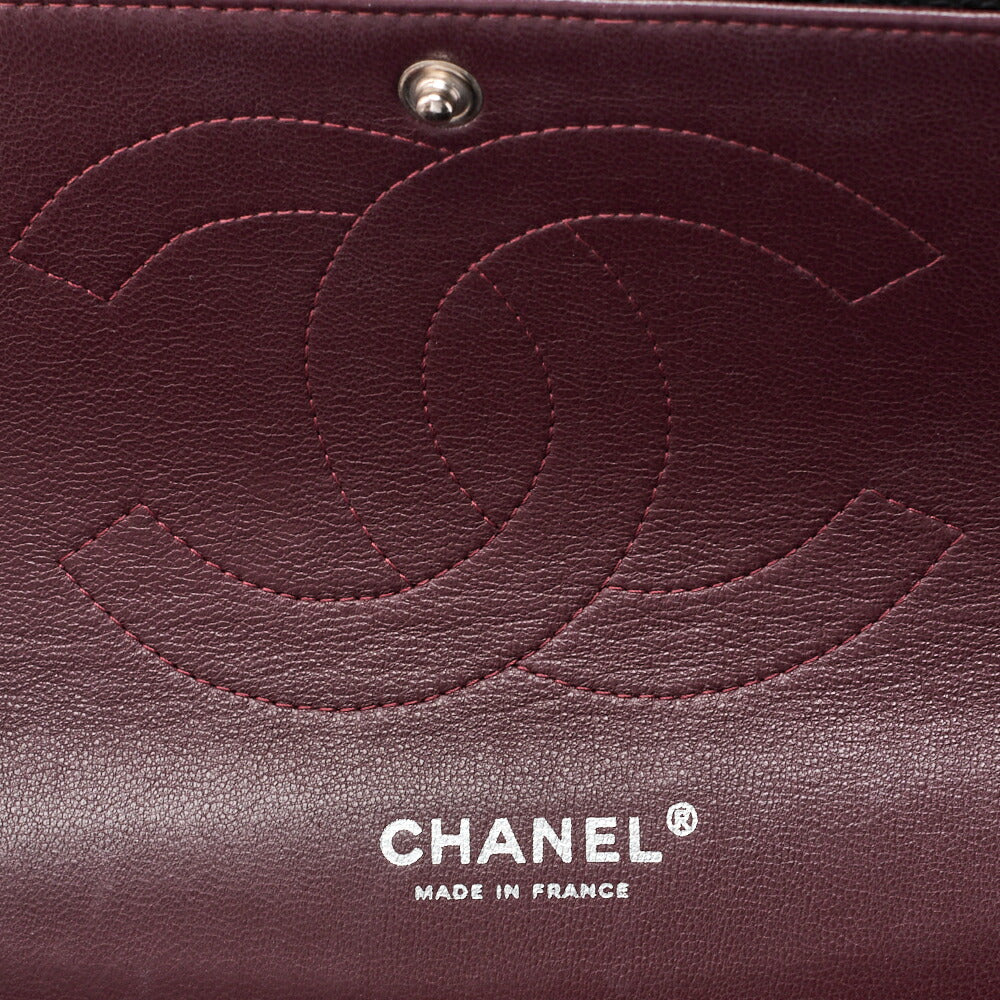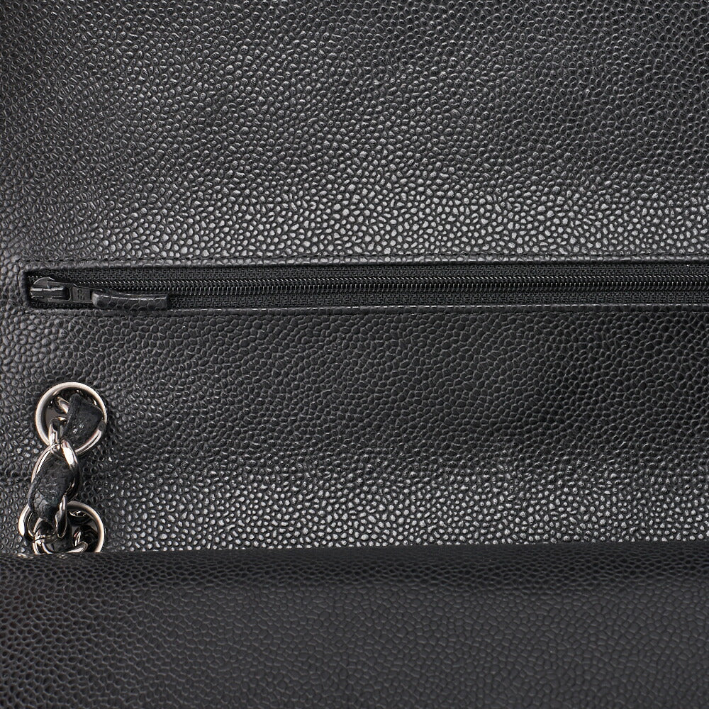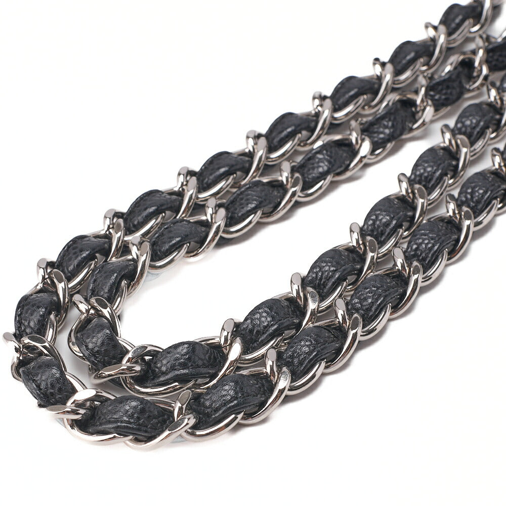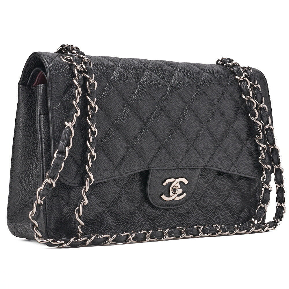 Pre-Owned Chain Shoulder Bag Deca Matelassé 30cm Double Flap Caviar Skin Black Silver-Tone Hardware, Pre-Owned