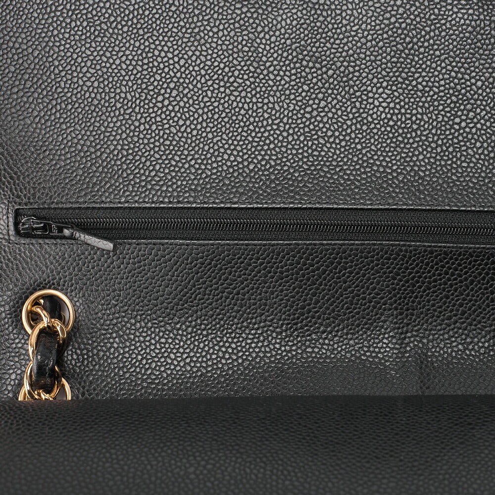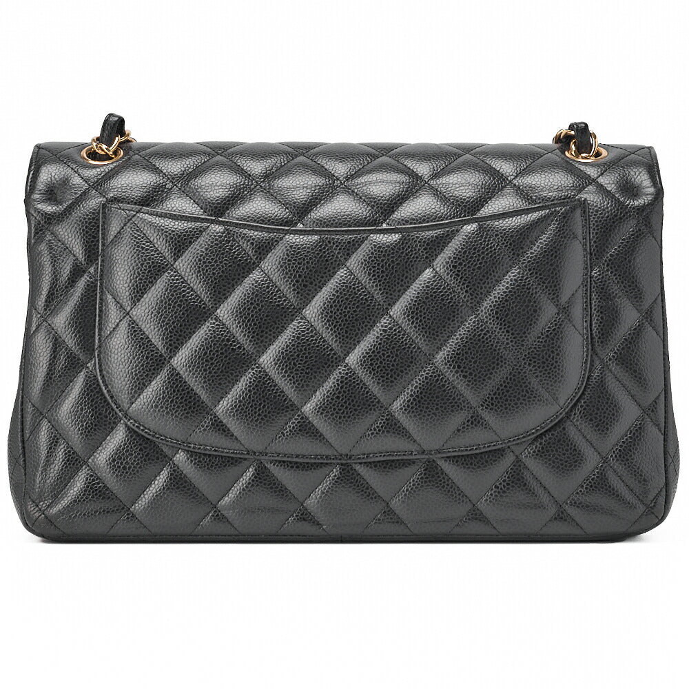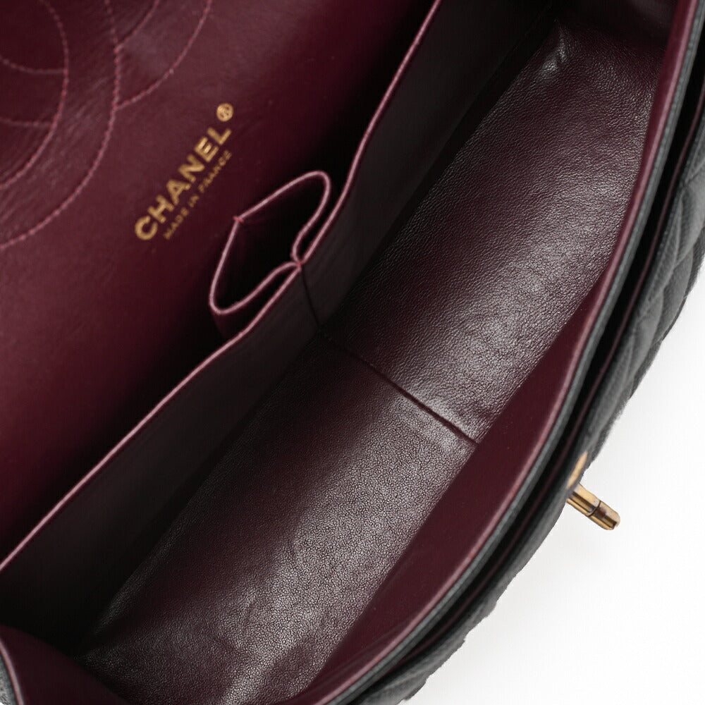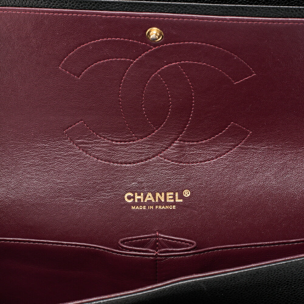 Gebrauchte Umhängetasche mit Kette Deca Matrasse 30 cm Doppelklappe Caviar Skin Schwarz Goldfarbene Hardware, Gebraucht