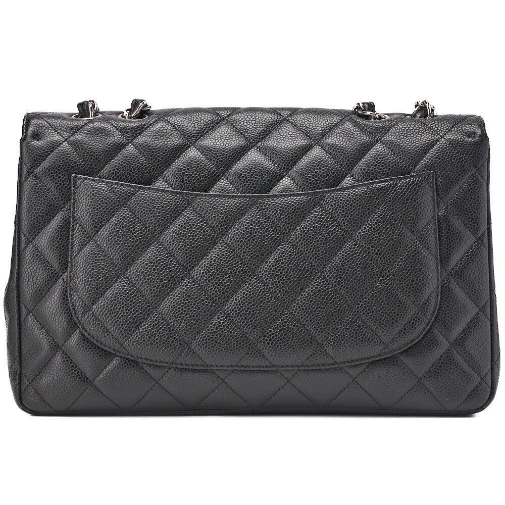 Pre-Owned Chain Shoulder Bag Deca Matelassé 30cm Single Flap Caviar Skin Black Gold-Tone Hardware, Pre-Owned