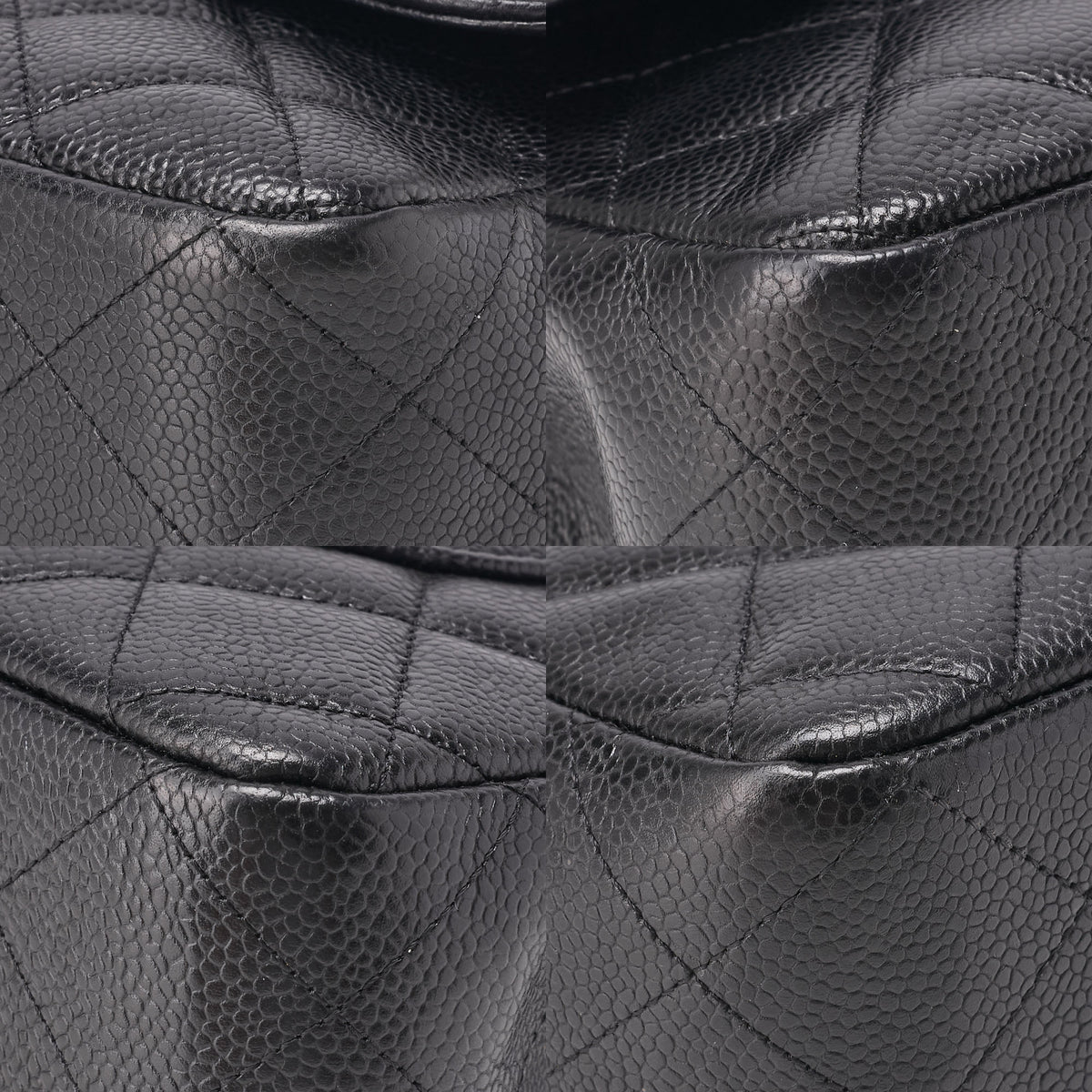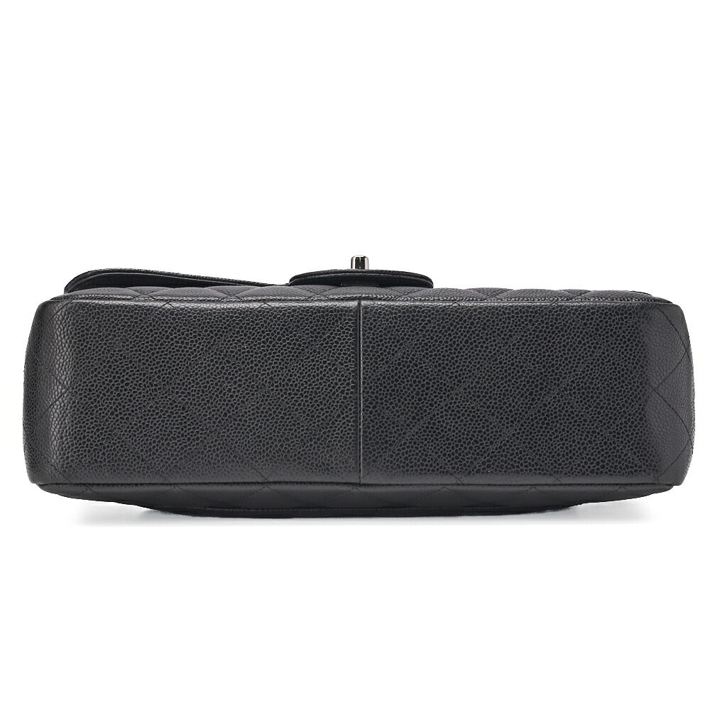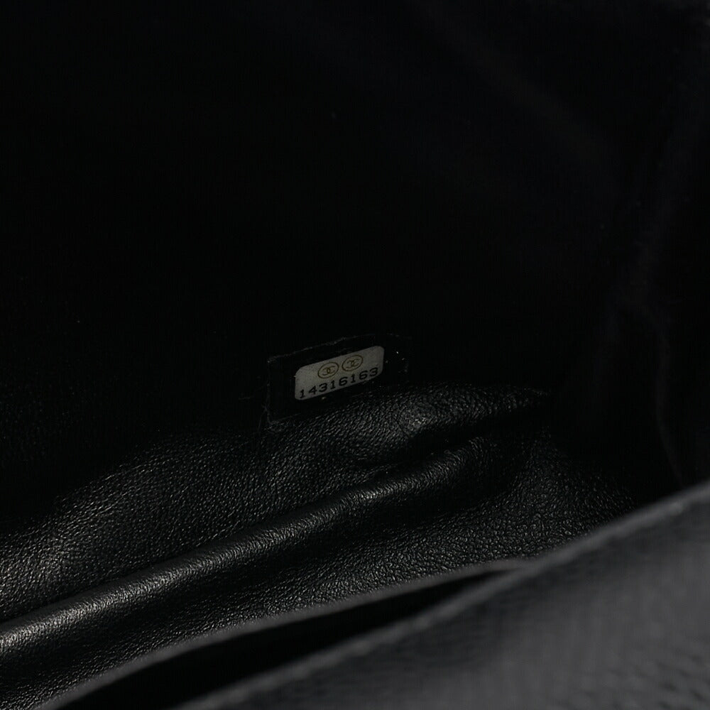 Crafted in premium caviar leather, the bag combines a resilient texture with a sleek, minimalist frame. The exterior remains a deep black, elevated by discreet gold-tone hardware that honors CHANEL’s lineage of lasting elegance. The strap offers hands-free versatility with an adjustable length from 70 to 126 cm, enabling multiple wear styles. In its pre-owned state, the bag retains refined detailing suitable for a collector seeking a sophisticated, enduring accessory.