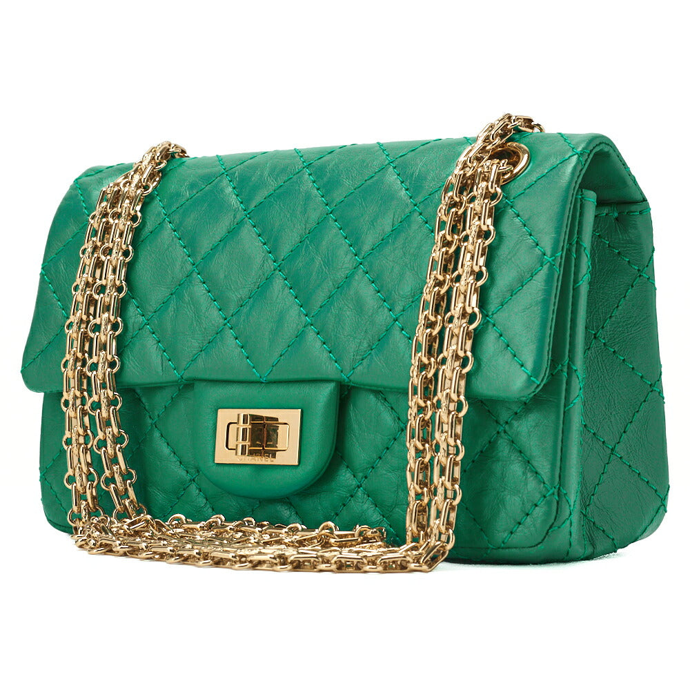 Veredeln Sie Ihren Stil mit der CHANEL Chain Shoulder Bag Matelasse 2.55 Vintage Calf Green (Gold Fittings) , einem zeitlosen Schmuckstück, das Luxus und Funktionalität vereint. Gefertigt aus exquisitem Vintage-Kalbsleder, besticht diese atemberaubende Schultertasche durch einen satten Grünton, abgerundet durch elegante Goldbeschläge, und ist somit eine vielseitige Ergänzung für jede Garderobe.
