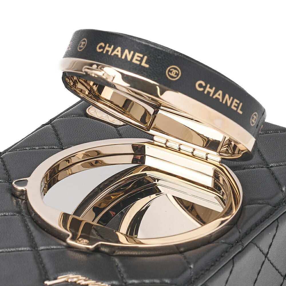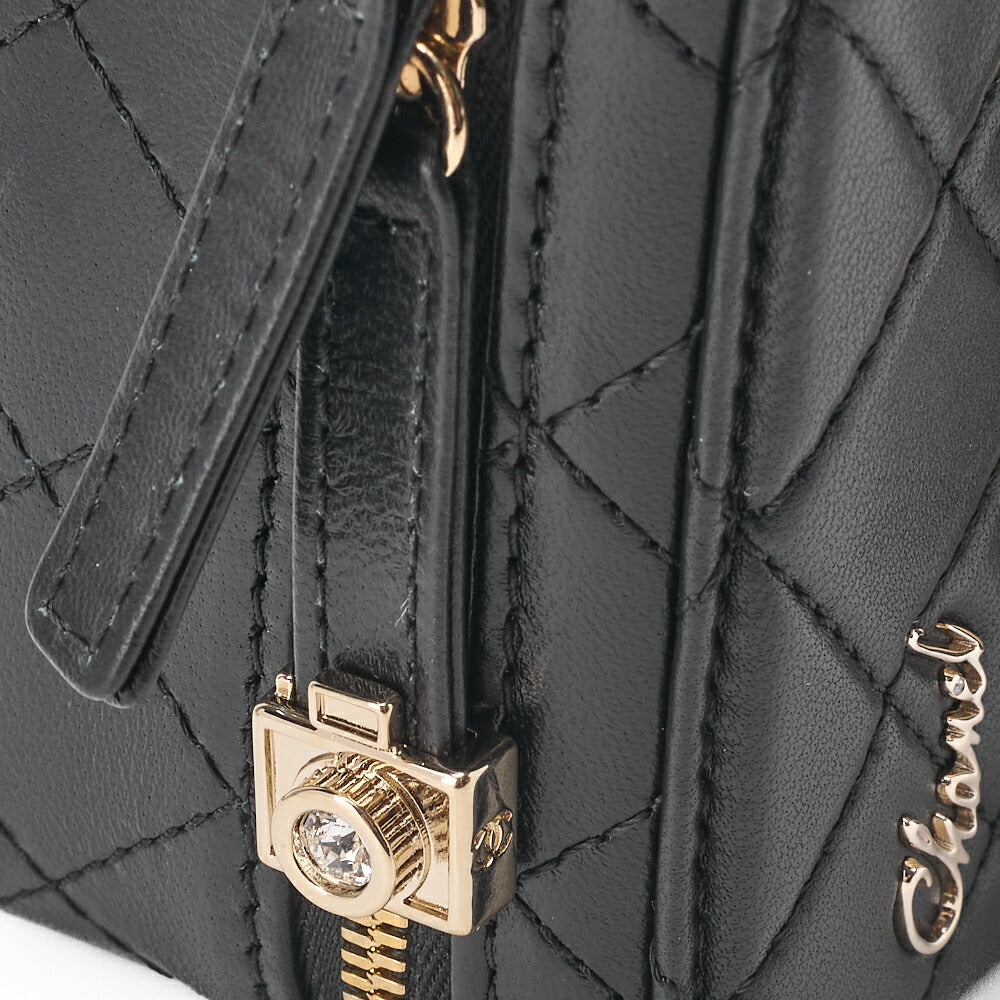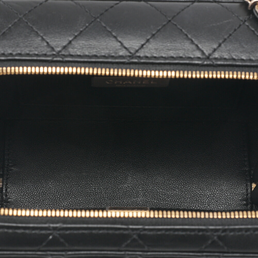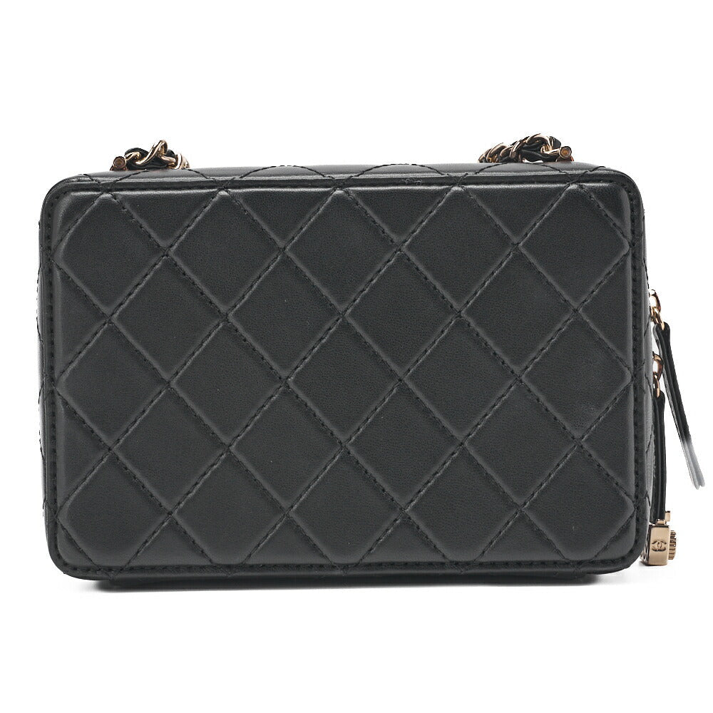 Pre-Owned Kette Schultertasche Matelasse Kameratasche Lammleder Schwarz Goldfarbene Hardware Pre-Owned