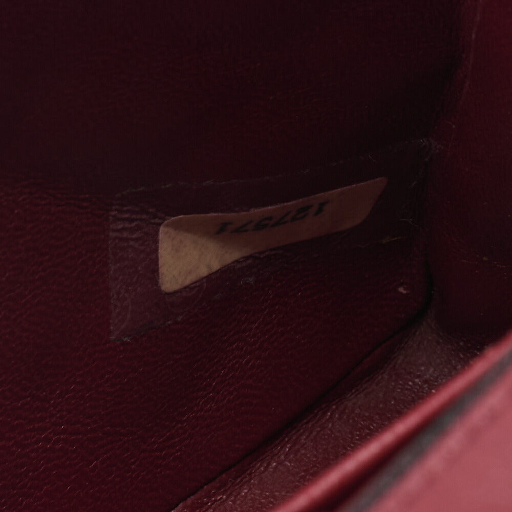 Obwohl diese Tasche gebraucht ist, weist sie Kratzer auf der Oberfläche und einige Abblätterungen an den Schulterbeschlägen auf, die ihren einzigartigen Charakter unterstreichen. Das Innere weist minimale Gebrauchsspuren auf und verströmt einen dezenten Schimmelgeruch, typisch für Vintage-Luxusartikel.