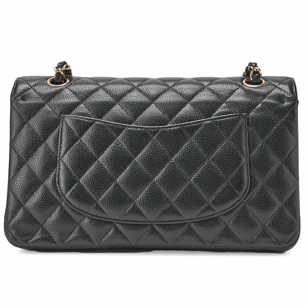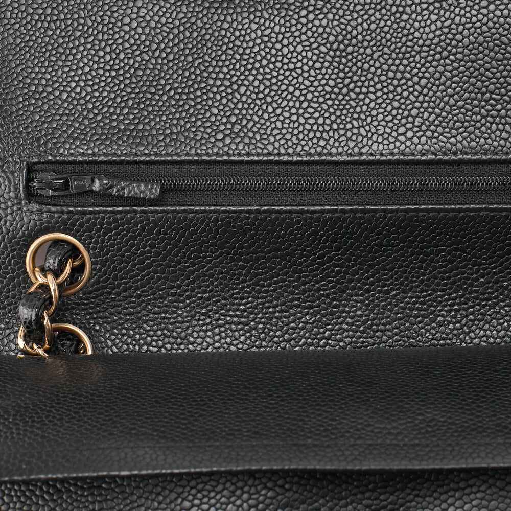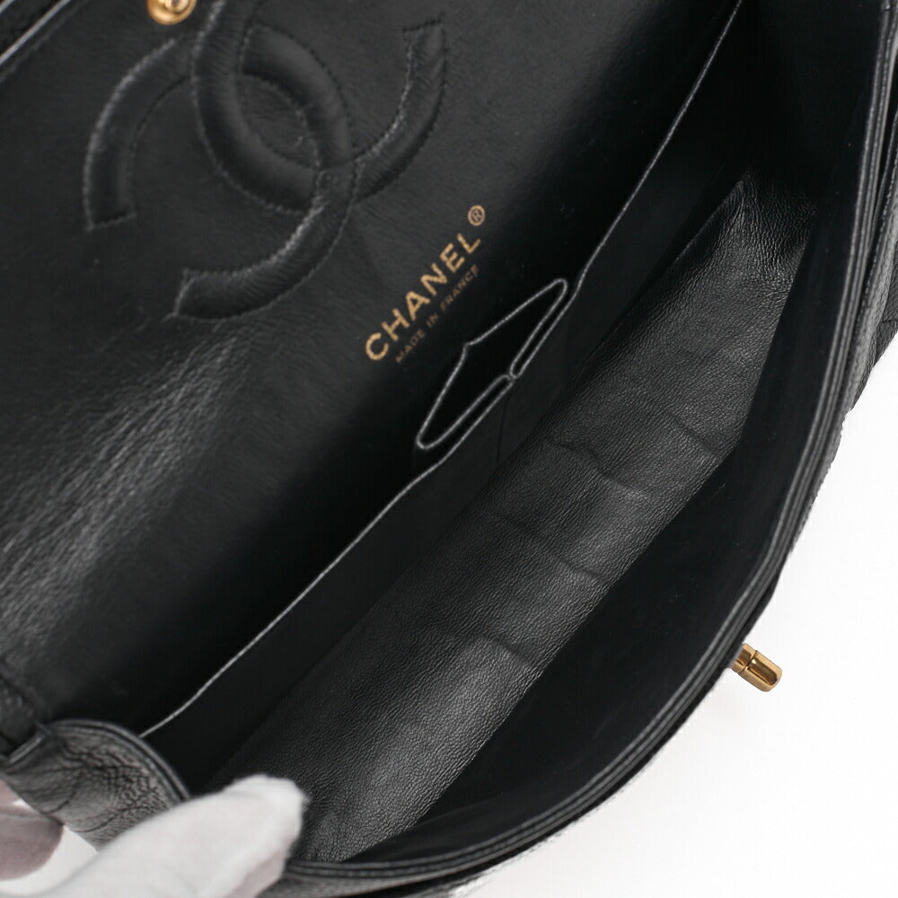 Pre-Owned Kette Schultertasche Matelassé Doppelklappe Kaviar Haut Schwarz Gold-Ton Hardware Pre-Owned