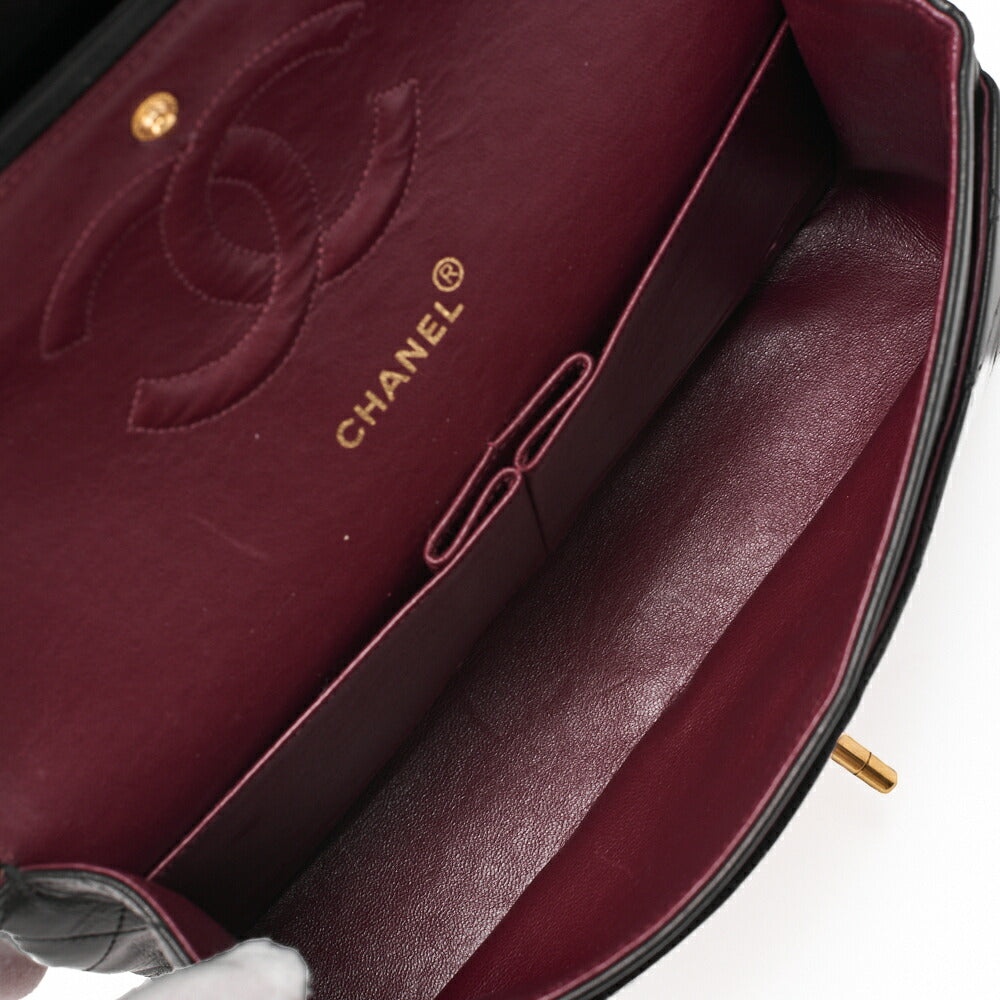 Pre-Owned Kette Schultertasche Matelassé Doppelklappe 25 Lammleder Schwarz Goldfarbene Hardware Pre-Owned