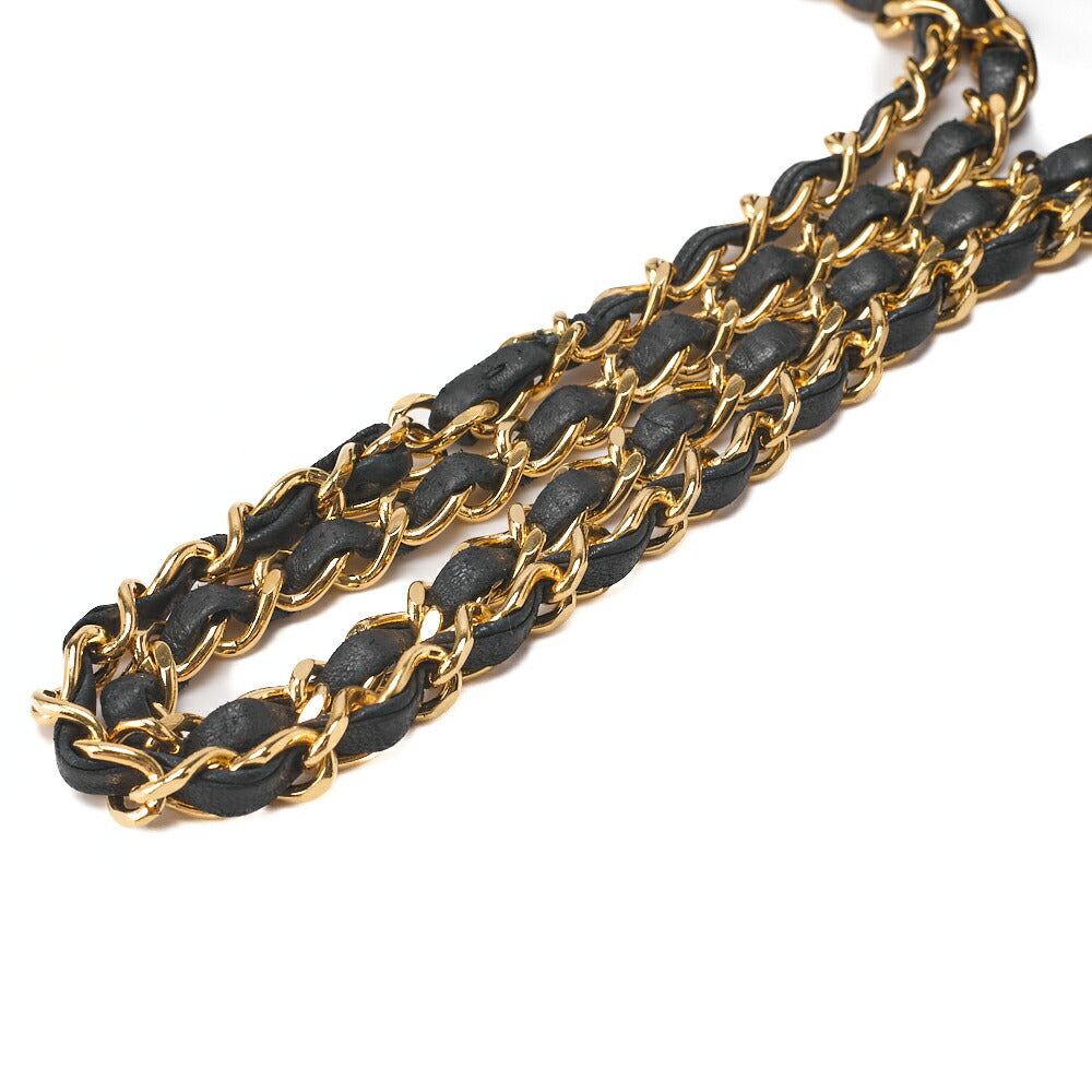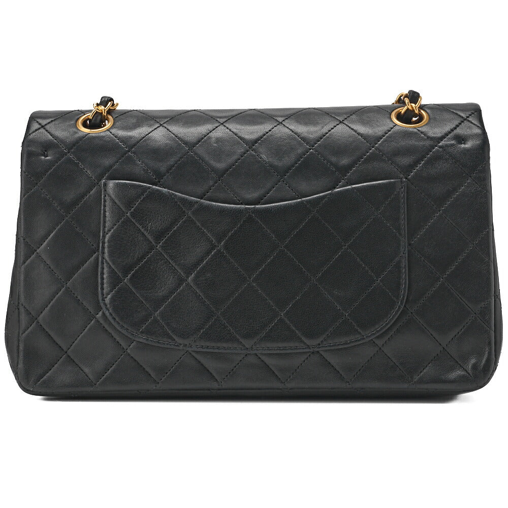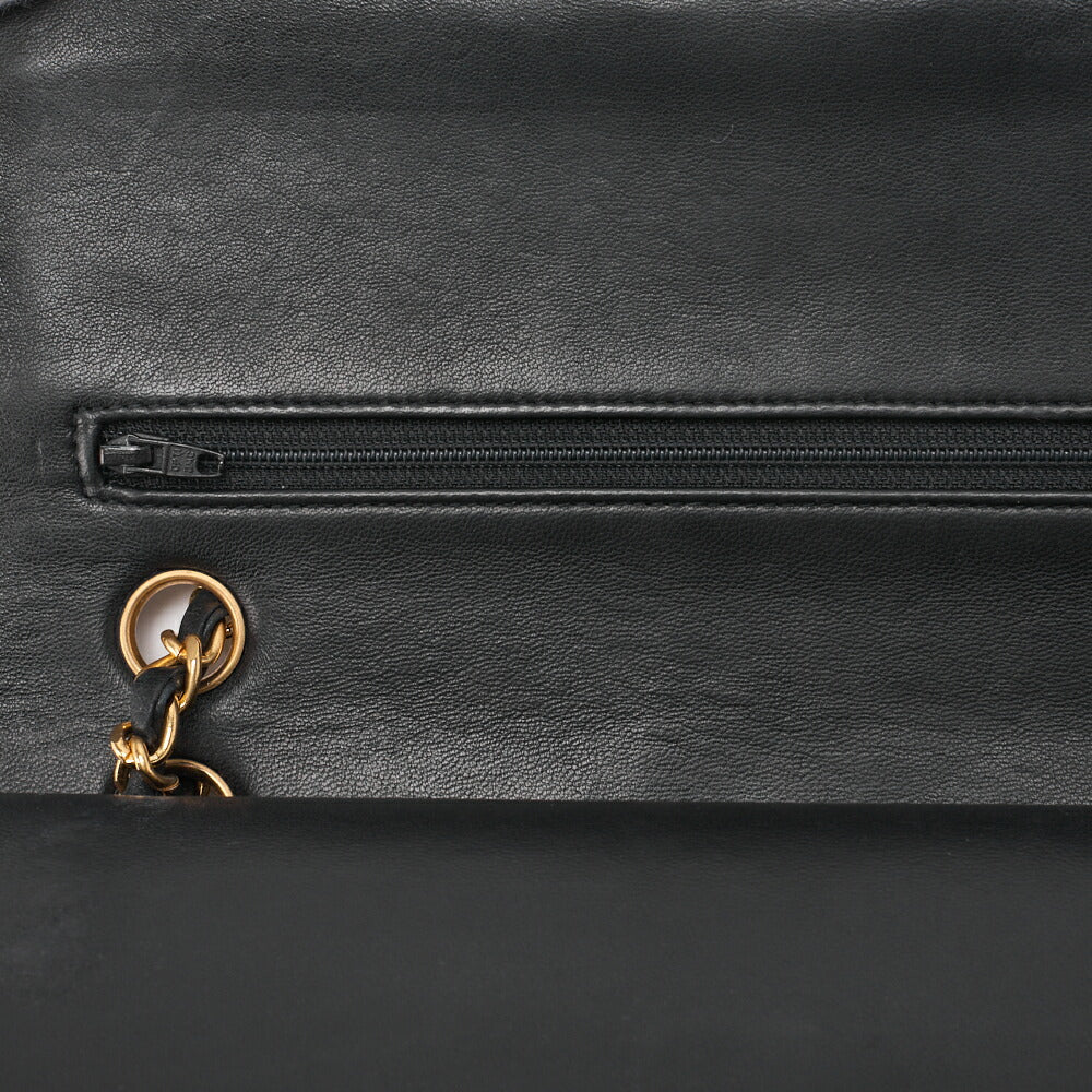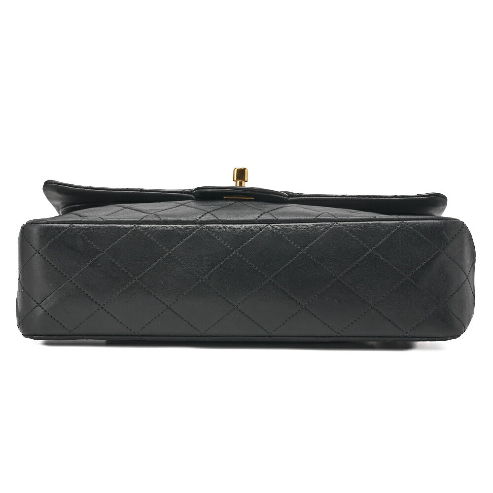 Pre-Owned Kette Schultertasche Matelassé Doppelklappe Lammleder Schwarz Goldfarbene Hardware Pre-Owned